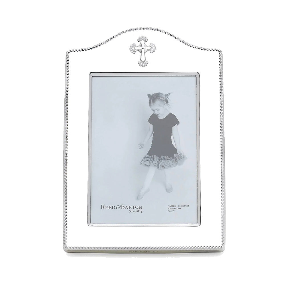 Including a gentle beaded border and a delicate cross at the top, this tarnish-resistant silverplate frame is the perfect gift to remember a cherished moment.