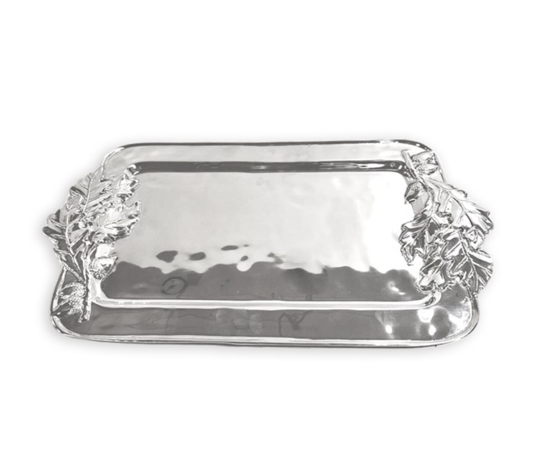 The Beatriz Ball holiday acorn large decorative metal tray is an indispensable serving piece with infinite possibilities for dramatic presentations. Freezer and oven friendly.