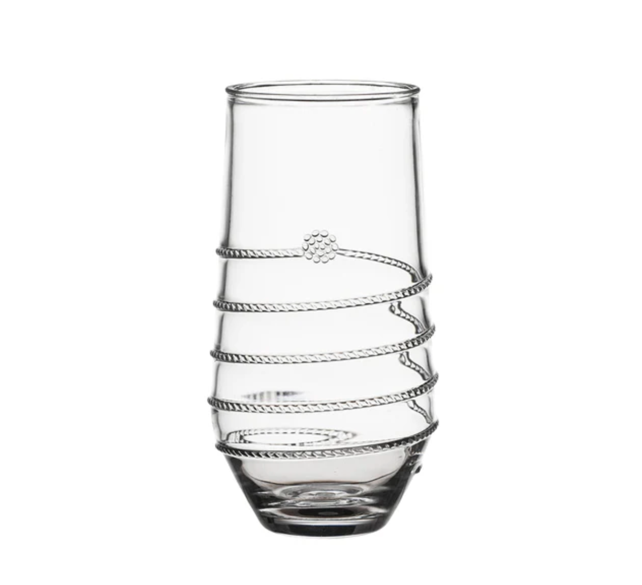 From our Amalia Collection - We've given the classic stemless wine glass a decadent twist with our signature Amalia swirl and single berry accent. The perfect vessel to sip and swirl your favorite vintages, signature cocktail, or sparkling water with a sprig of fresh mint and a slice of lime. The design makes it sublimely easy to throw in the dishwasher at evening's end.