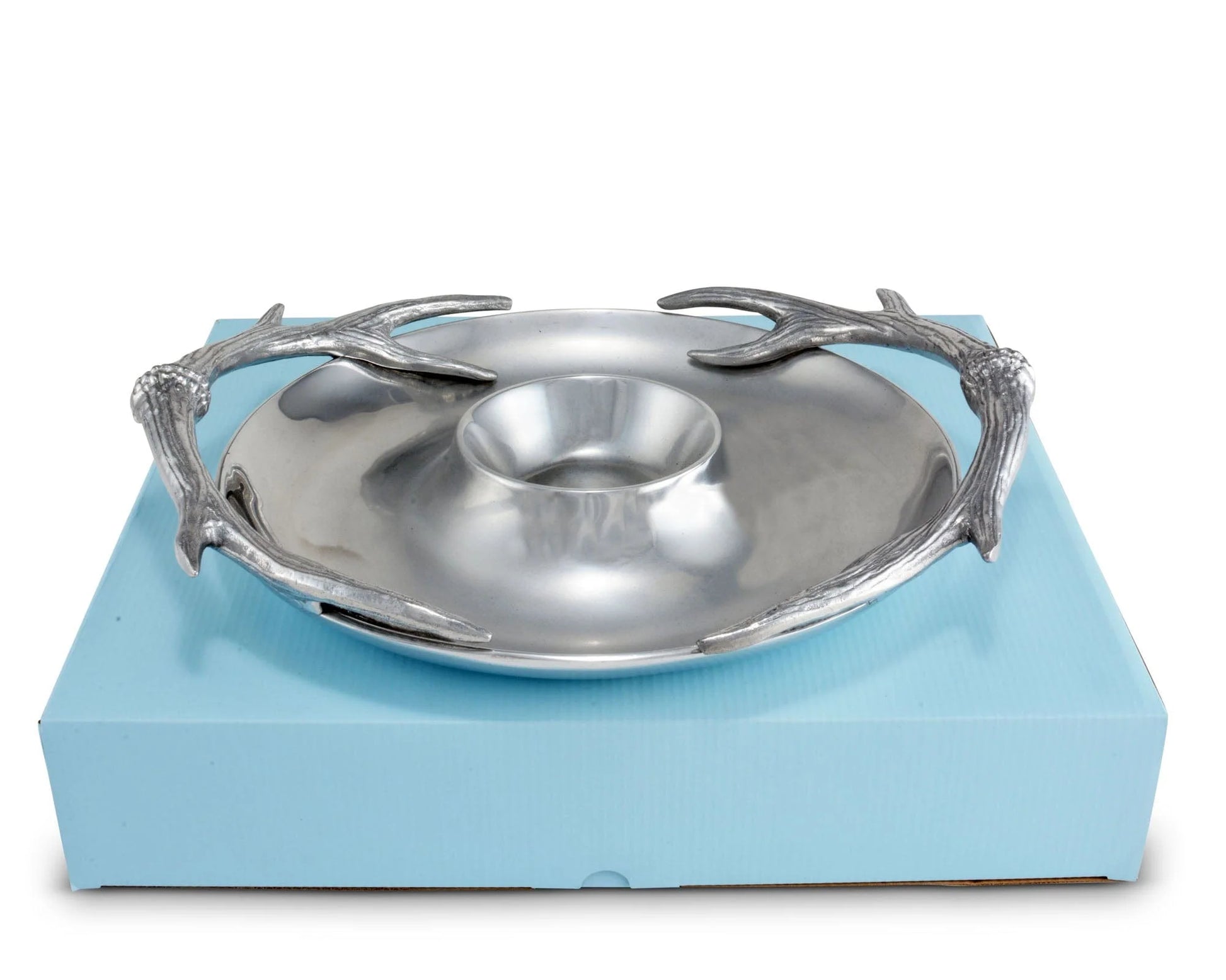 Spark the conversation before the food even comes out with this intriguing Antler Chip and Dip dish from Arthur Court.