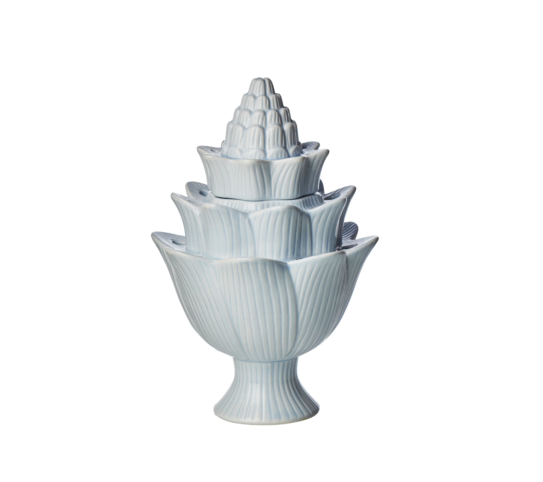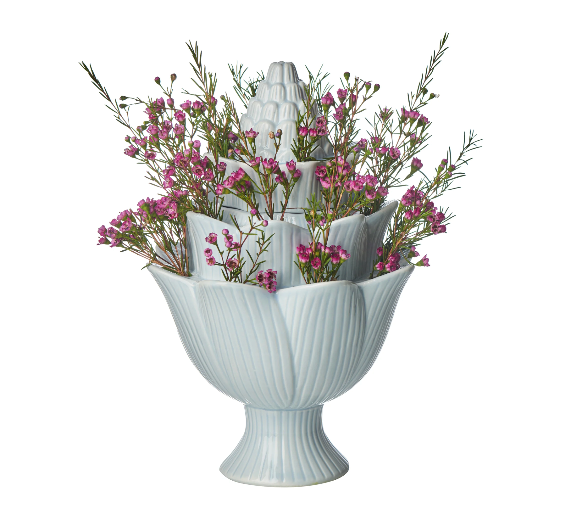 Always a favorite this artichoke leaf tulipiere makes flower arranging easy. Two tiers of leaves create the openings for tulips or any favorite flowers. Removable cap allows for easy cleaning.