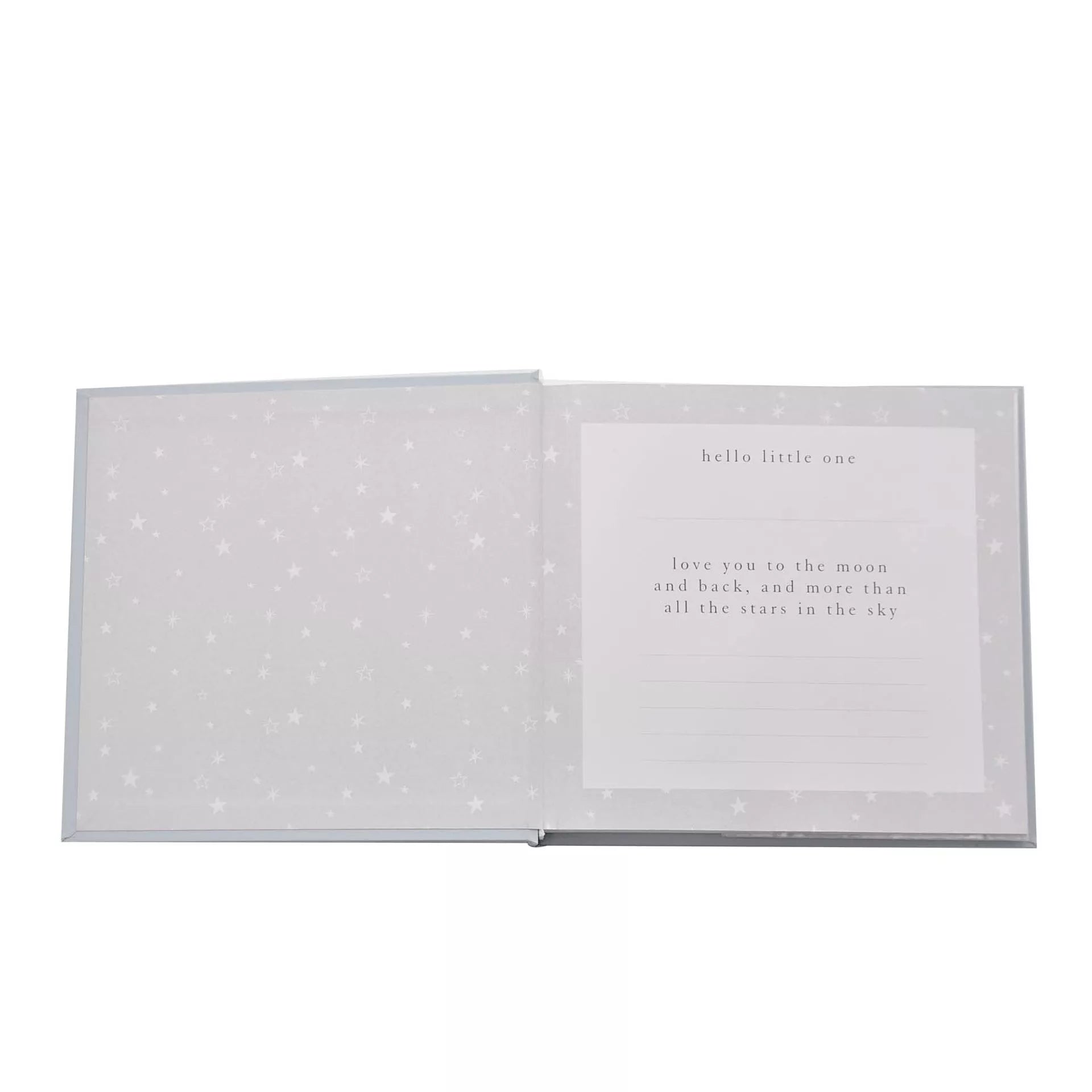 A photo album from BAMBINO BY JULIANA®. This adorable album allows parents to present photographs of their new born son with a personalised touch. The album features a blue cover, complete with ‘Beautiful Baby Boy’ decal in silver foil debossed lettering and matching, silver metal teddy icon with clear set crystal. Inside is space for fifty photographs, blank space for annotations and personalised front page. The photo album is packaged in a presentation box.