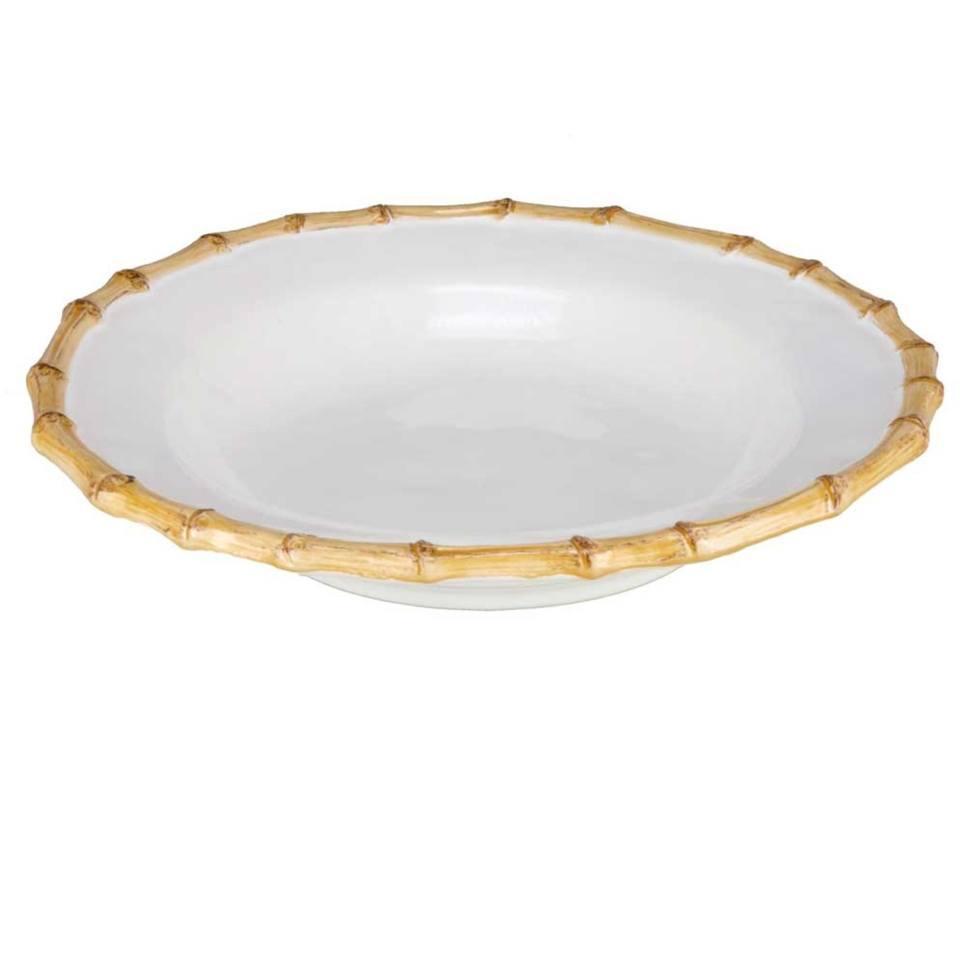 From our Bamboo Collection- Spoon in pastas and stews in abundant potions that are perfectly served in this worldly bamboo trimmed bowl. 14 oz capacity