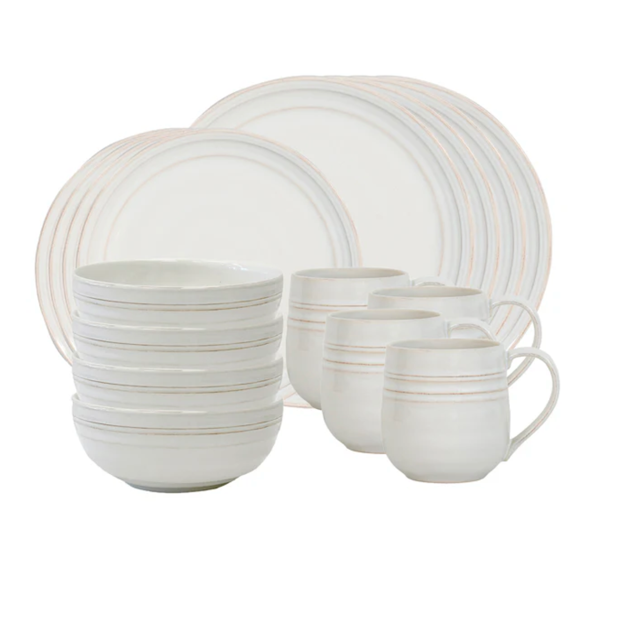 16pc setting includes: 4 dinner plates, 4 dessert/salad plates, 4 cereal/ice cream bowls & 4 mugs