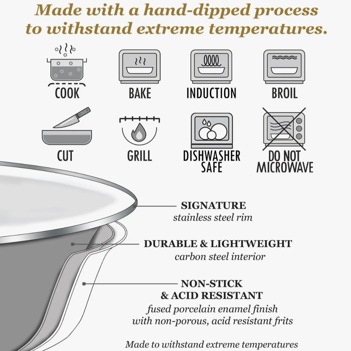 18 qt Stock Pot 18 qt capacity 13 inch diameter x 8 inch deep • Kiln Fired Porcelain Enamel Finish on Steel • Stainless Steel Rim for Extra Durability • Dishwasher Safe - Oven and Stovetop Safe - Works with Induction - Not Intended for Microwave Classic and colorful, spatterware is at home in a country kitchen or striking in a high setting. From oven to table to the dishwasher, Golden Rabbit enamelware is fully functional without forgetting the fun. Whether mixed or matched, our array of shapes and sizes can impressively outfit any event or enhance your existing table theme.