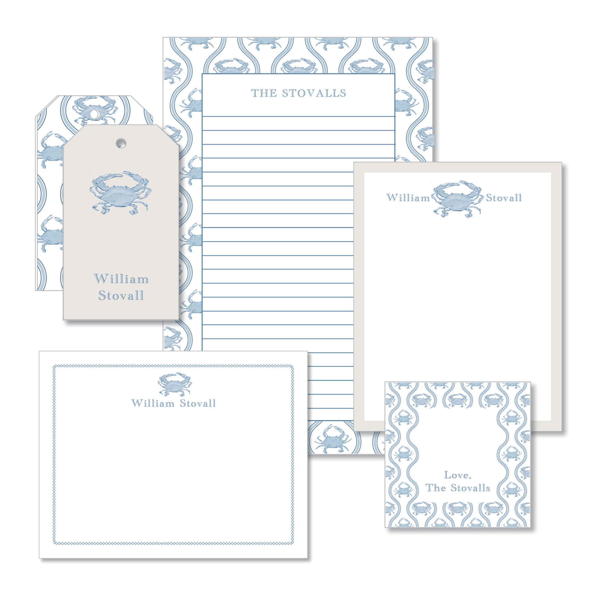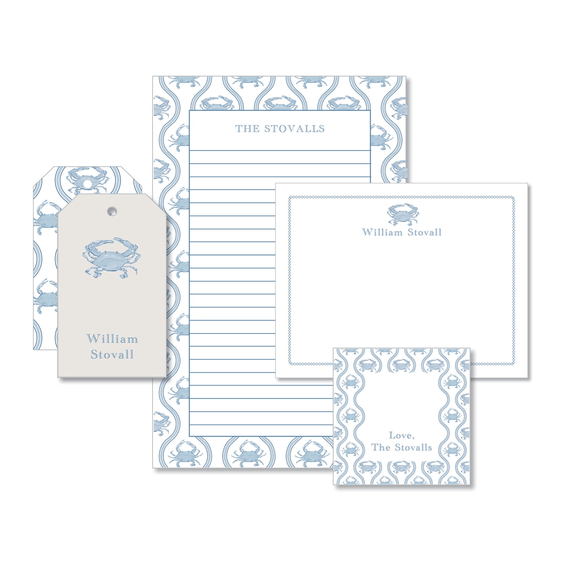 Small set includes: 10 notecards (5.5x4.25") with envelopes, 16 gift tags (2.375x4”) and 1 notepad (5.5x8.5” with 50 sheets)