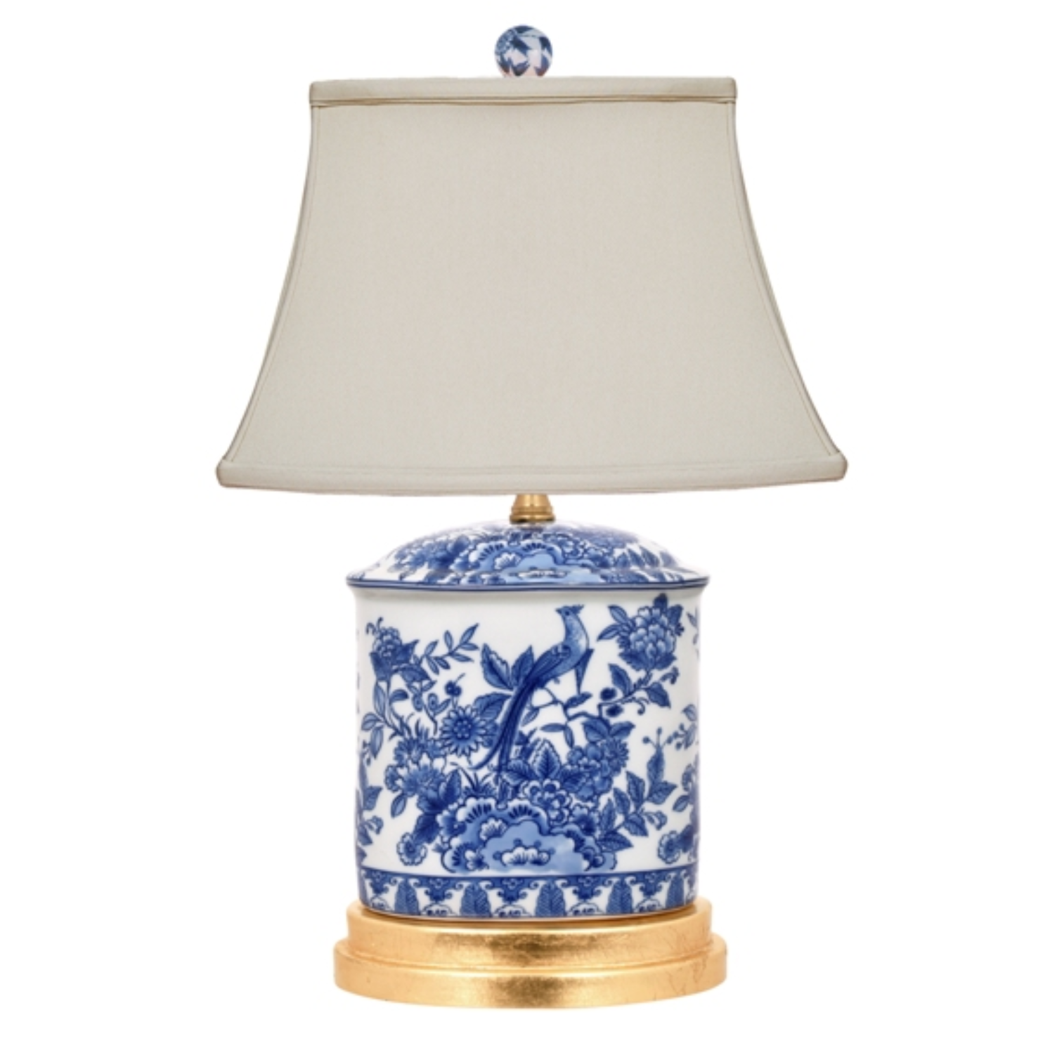 B/W PORCELAIN ENGLISH OVAL URN LAMP w/GOLD LEAF BASE