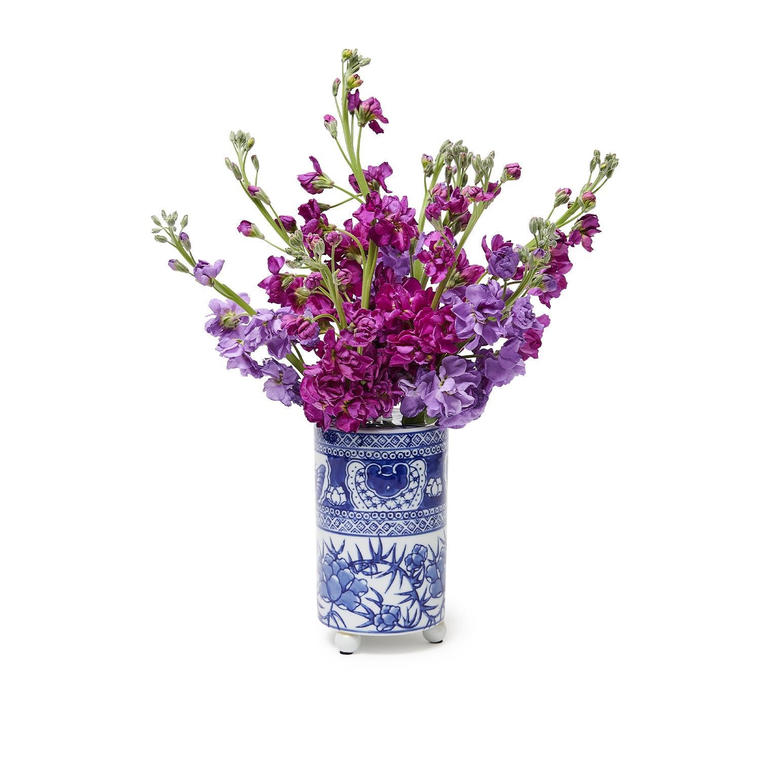 Inspired by designs from the ancient Ming and Qing dynasties, Lotus flowers are hand-painted with intricate details and a soothing blue palette on this Centerpiece Flower Arranger. Each Hand Painted Porcelain Vase comes with pre set holes that make flower arranging simple. Used singly around your home, outside in the center of your outdoor umbrella table, or down the center of your dining table. There are endless uses for this classic design.