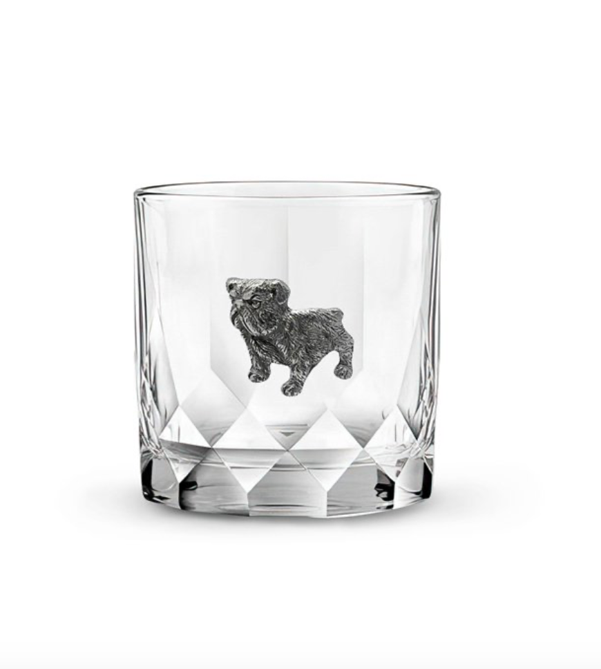 Classic Faceted Rocks Glass/Tumbler with fine pewter Bulldog motif