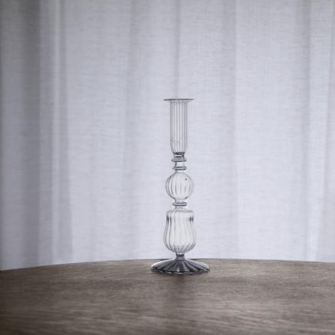 A magic touch. Beatriz Ball celebrates Grandmillennial Style with the luxurious GLASS Cambridge Collection. Clearly classic, the Cambridge Daphne 8.5" Candlestick Holder in crystal clear glass has a lighter-than-air delicacy, and a diamond-like brilliance and clarity. Guaranteed to add a touch of design magic to any room, the candlestick holders can be topped with tapers in fun colors, and mixed and matched with other Cambridge designs of various hues and sizes. A great new addition to your home, the candlestick holders are sold as a set of two. Made in China exclusively for Beatriz Ball.