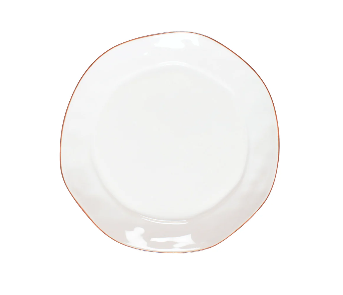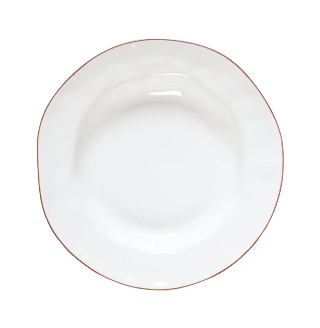 Simple, timeless, and pure perfection definitely describes Cantaria; so durable and the perfect backdrop for all your yummy creations. Cantaria will have you smiling every time you set your table. The edge of each piece in the Cantaria collection features a hand applied unique pantine, which means that no two pieces are exactly alike. Handcrafted in Portugal of ceramic stoneware. Freezer, oven, microwave and dishwasher safe.