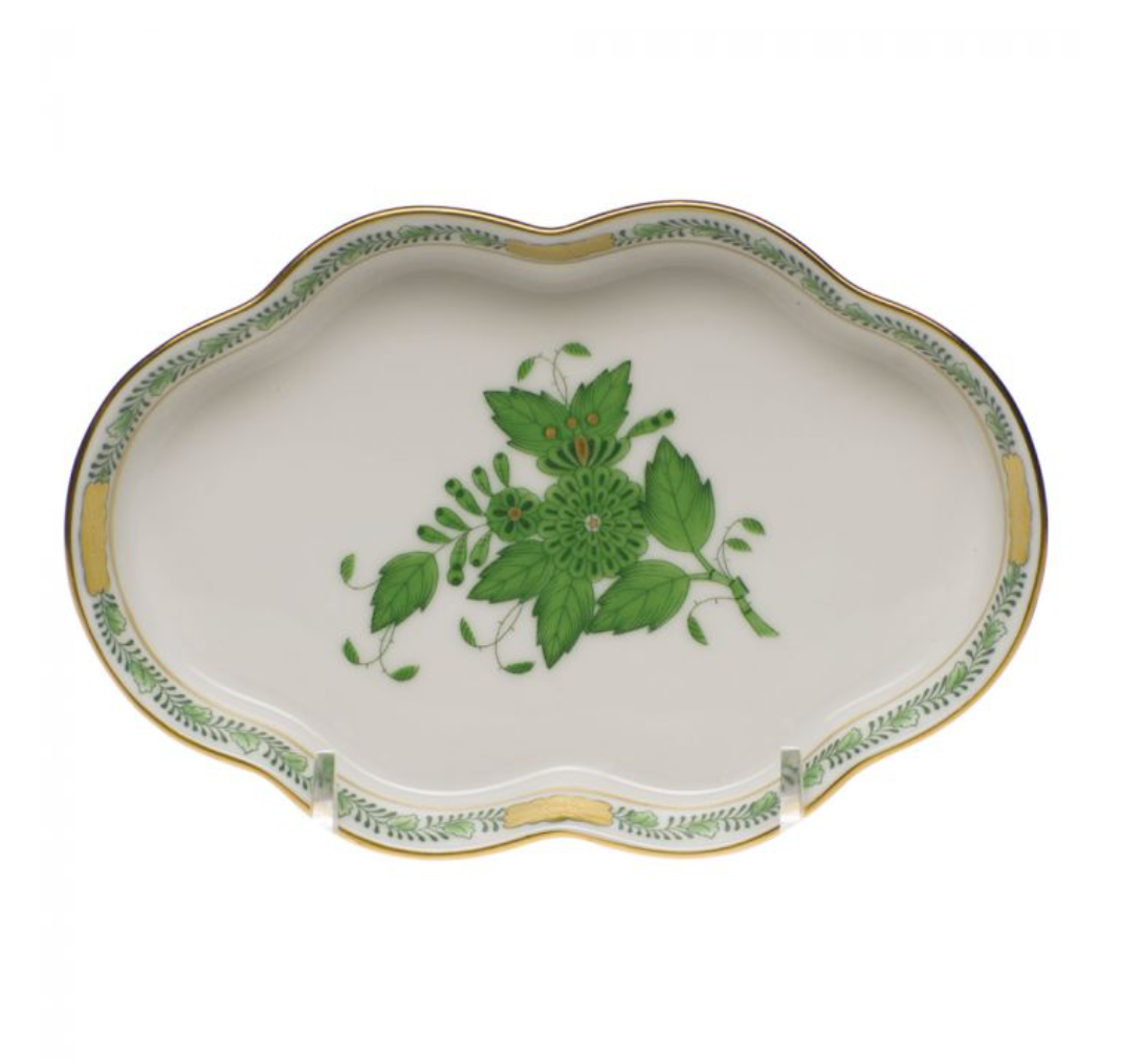 Chinese Bouquet Green small scalloped tray