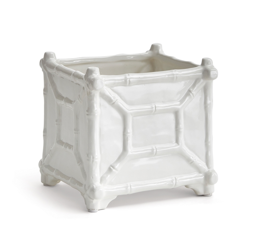 This clean, white cachepot is made in classic style. With unmistakable chinoiserie-inspired bamboo details, it is sure to be a bestseller.