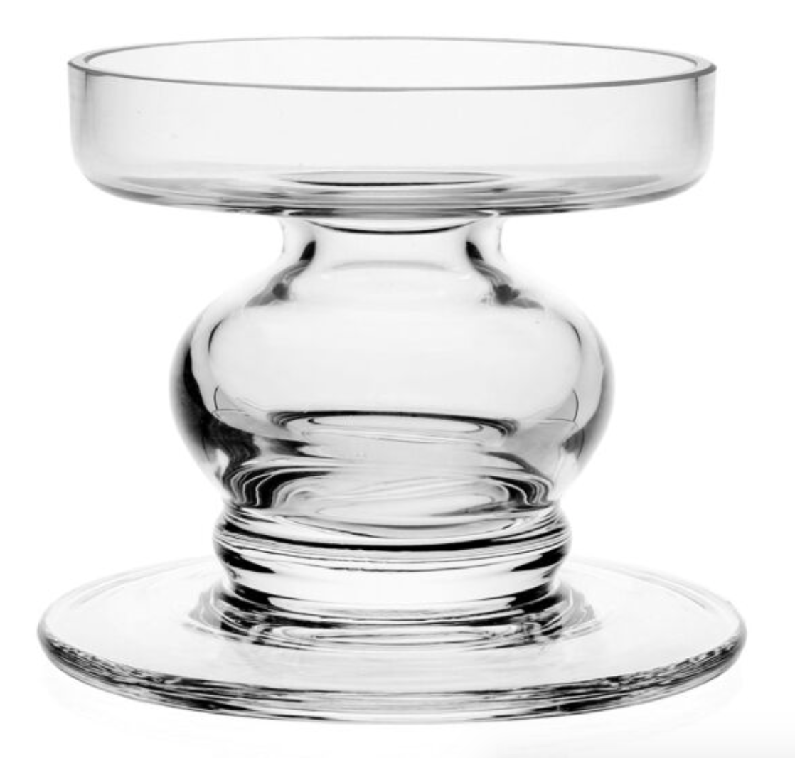 This classy candleholder can be used on its own or used with one of our hurricane shades. They look wonderful with sturdy pillar candles but also hold a 1" taper.