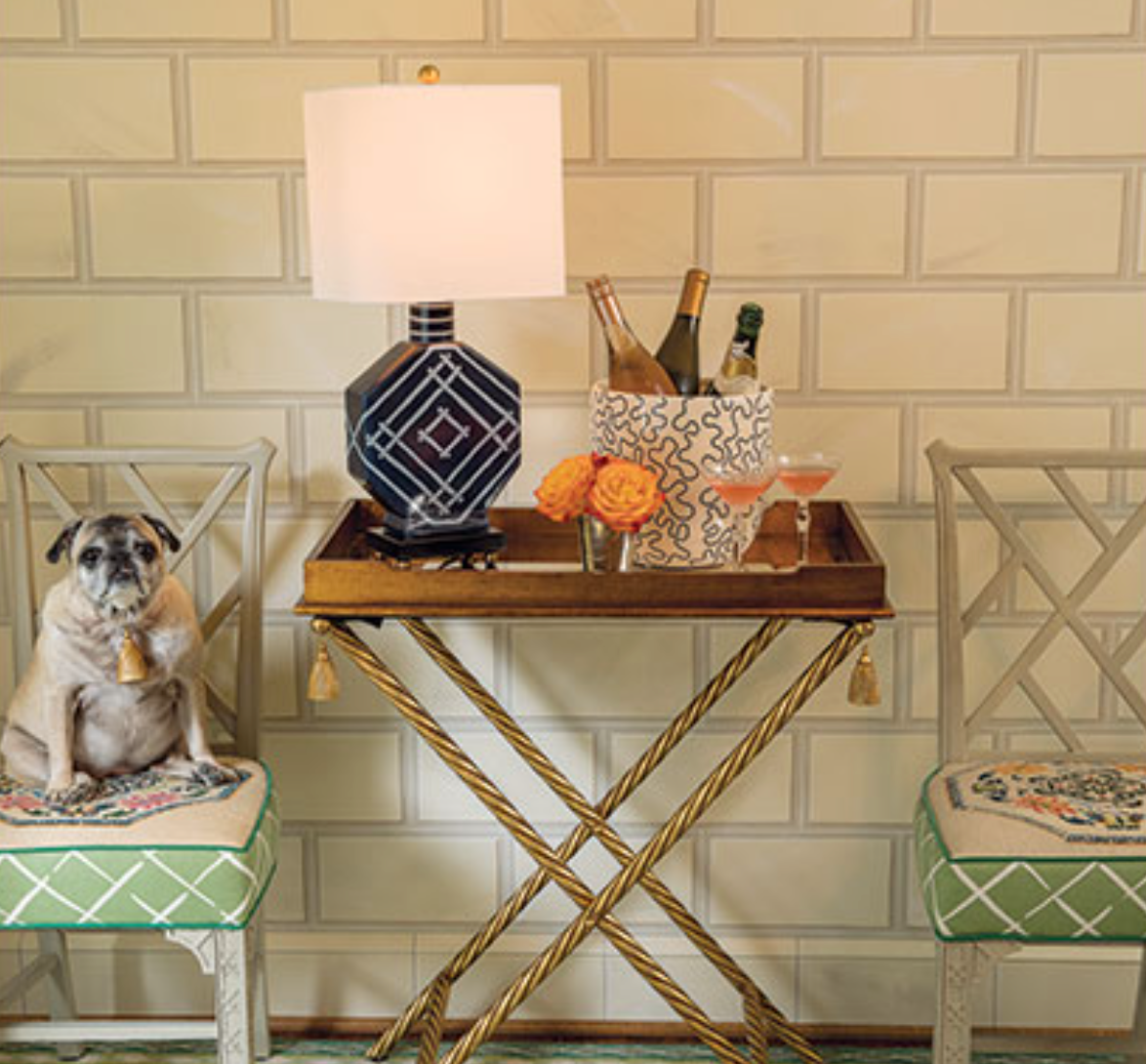 - Classic trellis pattern octagon table lamp by Madcap Cottage for Port 68.
