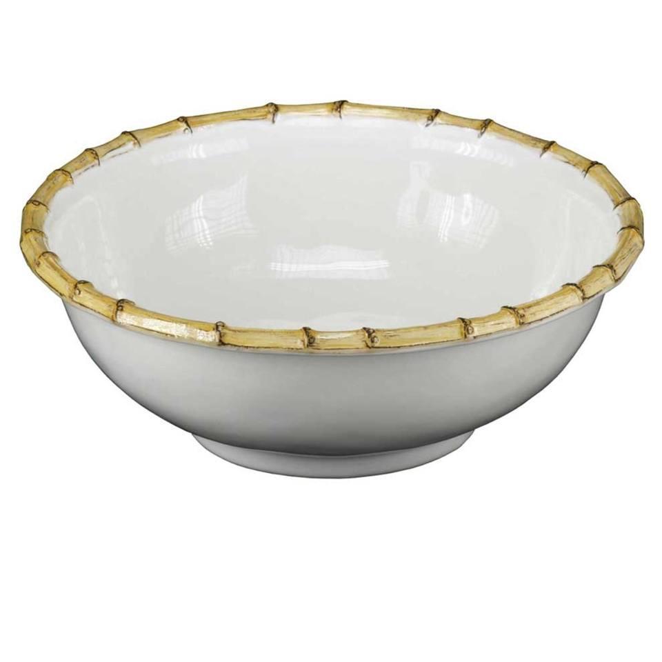 From our Bamboo Collection - A modern serving bowl encircled with a traditional bamboo rim. This piece is a chic addition to any decor.