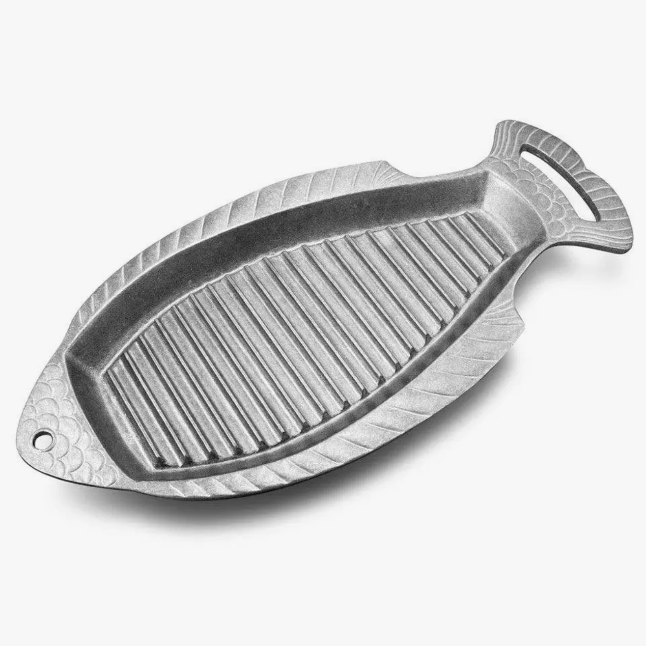 Gourmet Grillware is essentially cookware for grilling, tailgating, camping and more. Grill anything from bacon to vegetables, fish or any of those slip-thru-the-grate foods. Then serve your food piping hot, right on the piece. One piece to clean is better than two! Heat safe to 1000 degrees Fahrenheit; great for the grill, stovetop or even inside your oven. Will not crack, chip, break, rust or tarnish. Fish Griller measures 18 3/4 inches long by 8 1/2 inches wide. Hand wash with warm water and mild detergent. As with any cookware, it is recommended to use cooking oil prior to grilling. Olive oil & cooking sprays are not recommended as they burn easily at high temperatures which can damage or discolor your grillware.