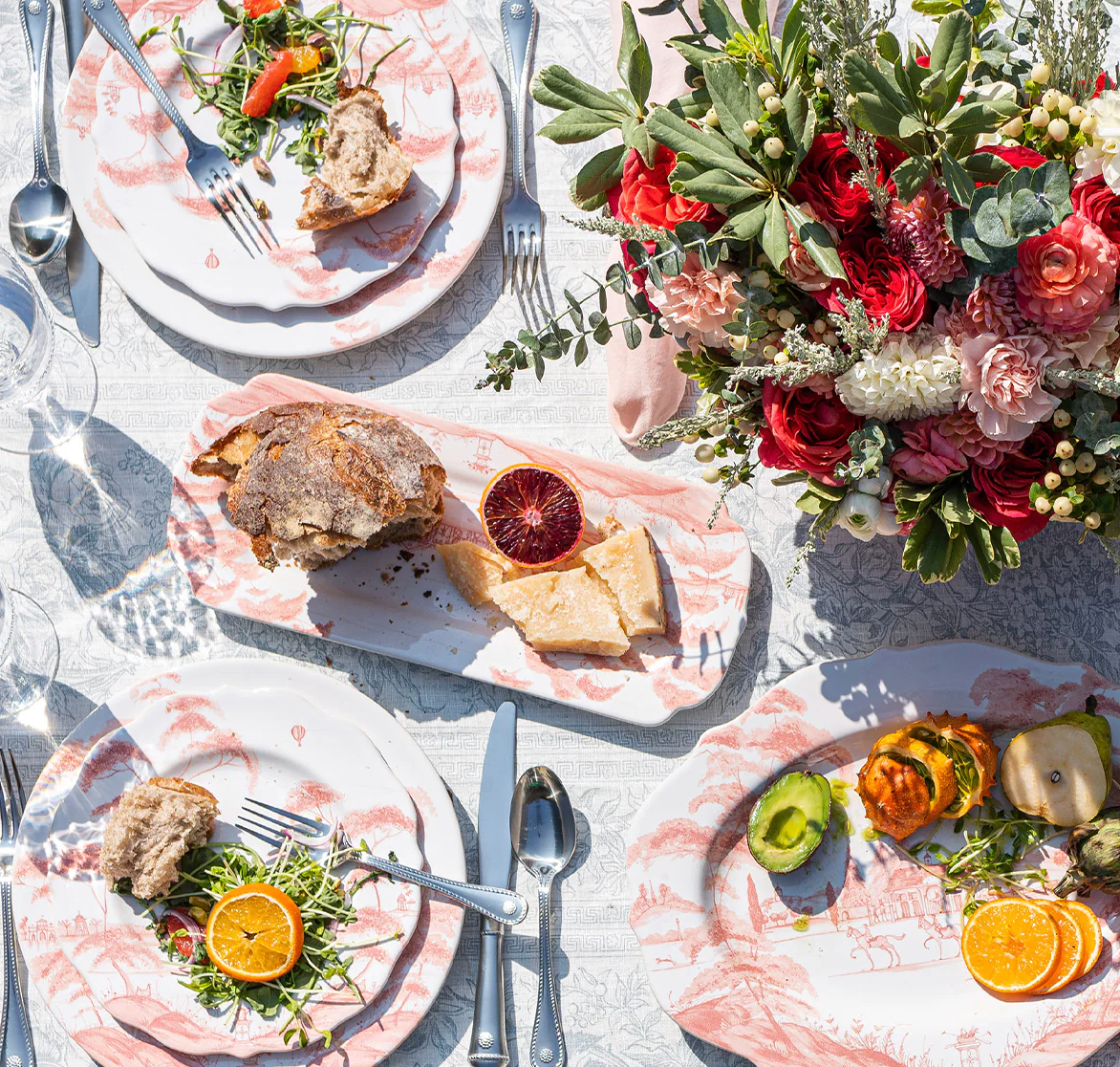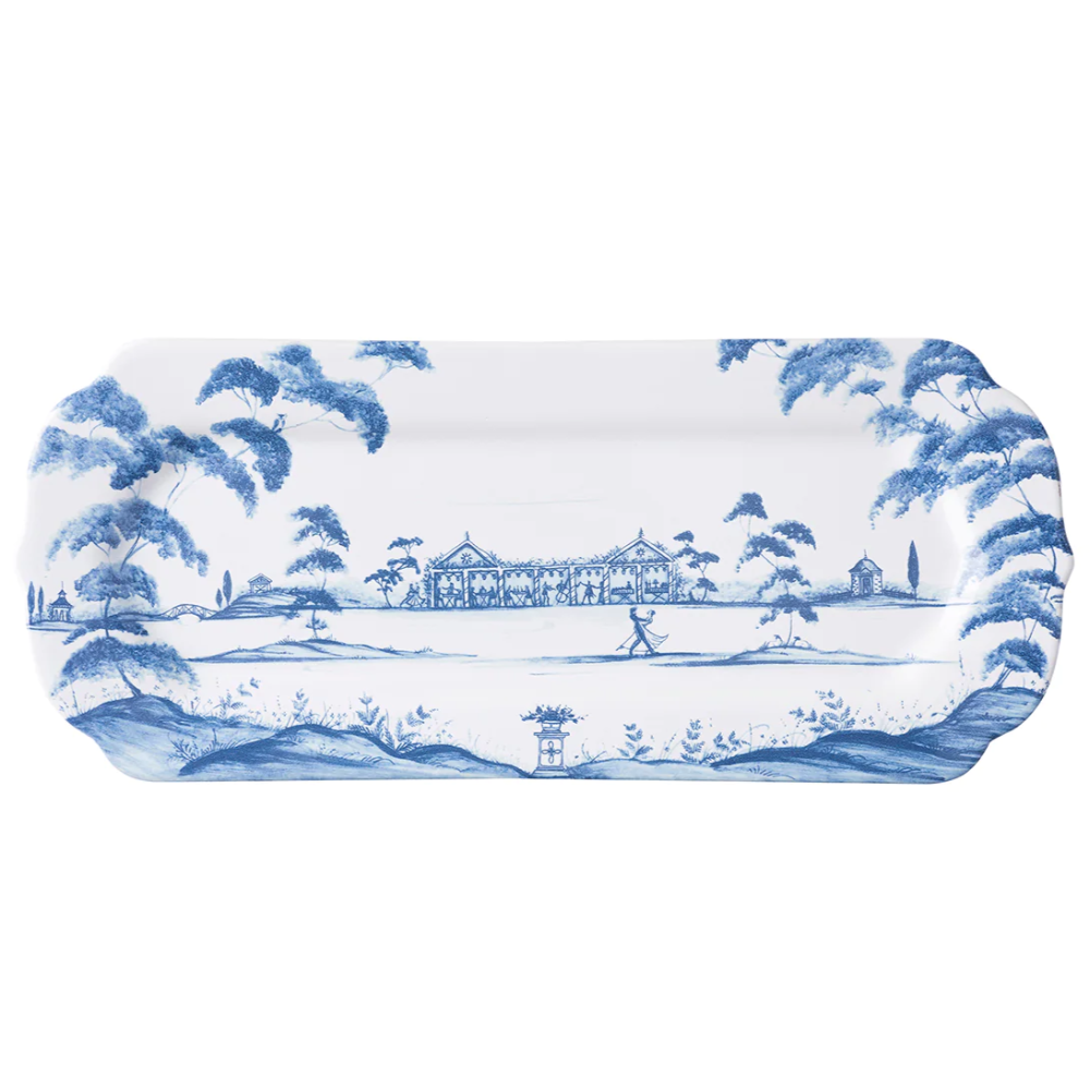 From our Country Estate Collection- "If music be the food of love, play on..." Our lovely tray illustrates the perfect ingredients for a bit of romance: fondness of dancing, a little moonlight, and a fabulous garden party. Lavish it with our Amalia Champagne flutes filled to the brim with golden bubbly and pass it along. Featuring: Garden Party, Rose Arbor, and Hen House.