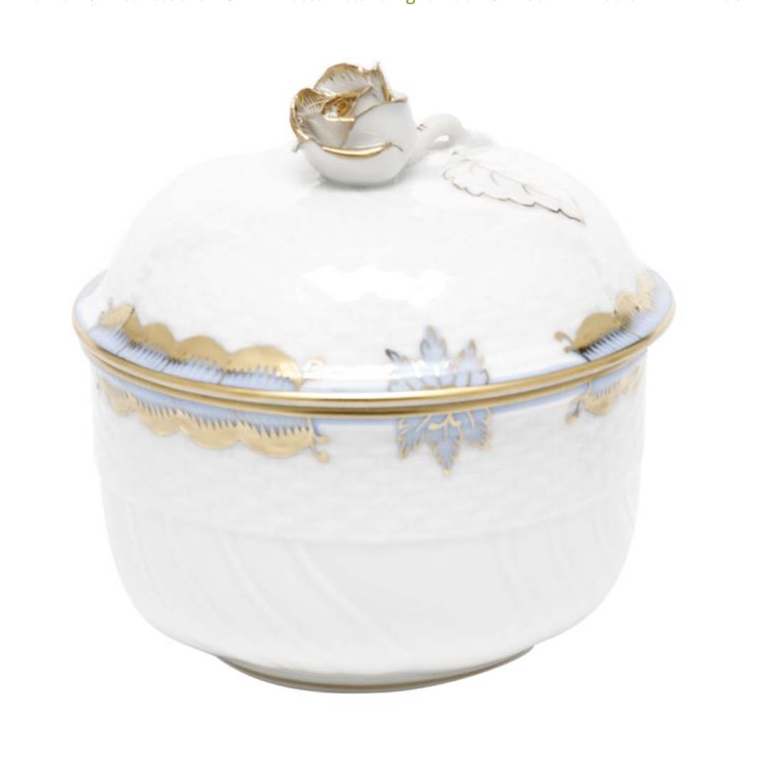 Covered sugar with delicate rose on lid.