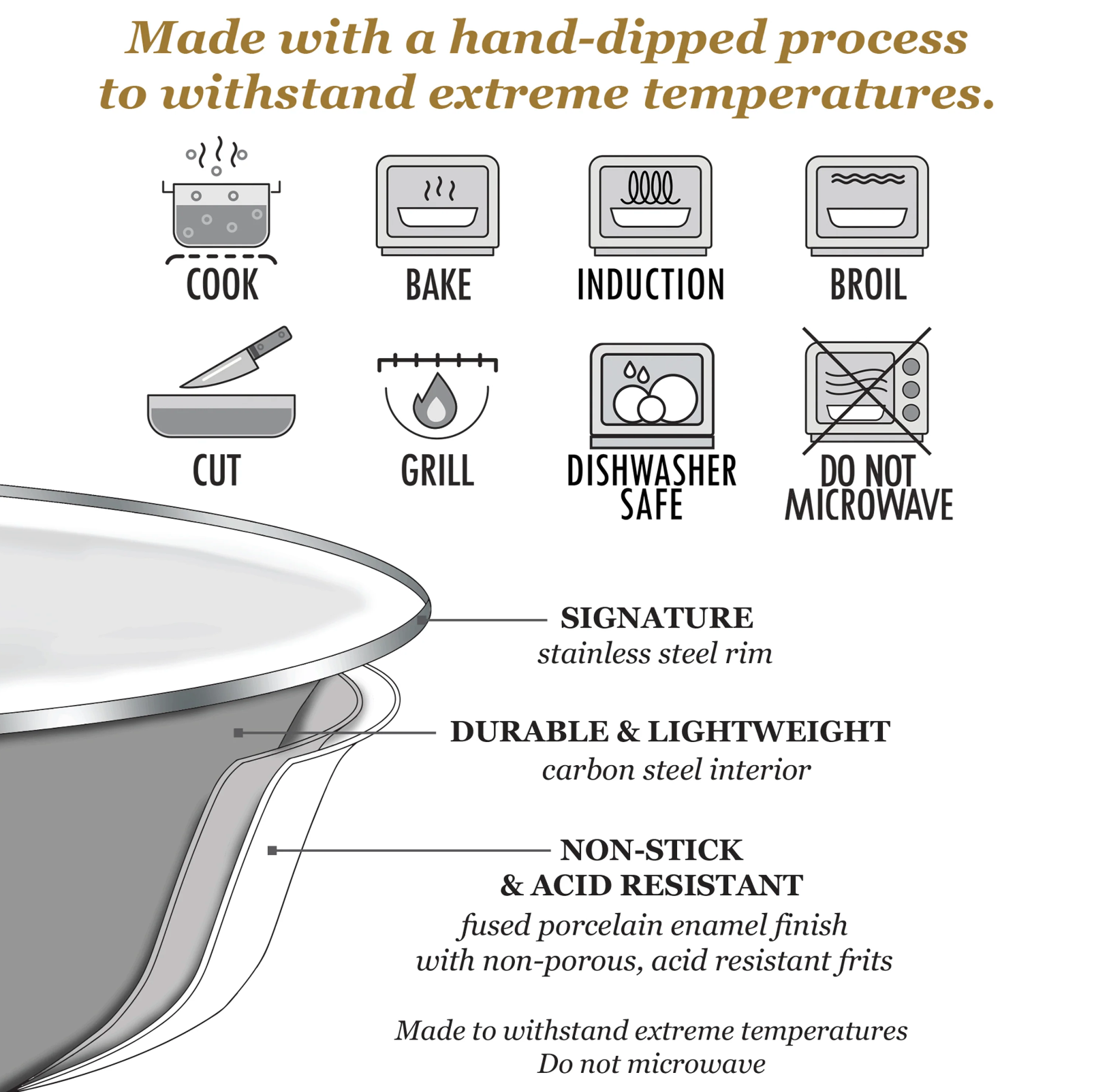 18 qt Stock Pot 18 qt capacity 13 inch diameter x 8 inch deep • Kiln Fired Porcelain Enamel Finish on Steel • Stainless Steel Rim for Extra Durability • Dishwasher Safe - Oven and Stovetop Safe - Works with Induction - Not Intended for Microwave Classic and colorful, spatterware is at home in a country kitchen or striking in a high setting. From oven to table to the dishwasher, Golden Rabbit enamelware is fully functional without forgetting the fun. Whether mixed or matched, our array of shapes and sizes can impressively outfit any event or enhance your existing table theme.