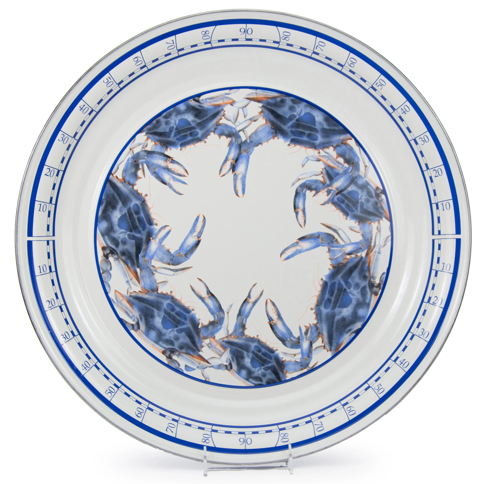 20 inch Large Tray 20 inch diameter x 2.25 inches deep • Kiln Fired Porcelain Enamel Finish on Steel • Stainless Steel Rim for Extra Durability • Dishwasher Safe - Oven and Stovetop Safe - Not Intended for Microwave Classic and colorful, spatterware is at home in a country kitchen or striking in a high setting. From oven to table to the dishwasher, Golden Rabbit enamelware is fully functional without forgetting the fun. Whether mixed or matched, our array of shapes and sizes can impressively outfit any event or enhance your existing table theme.