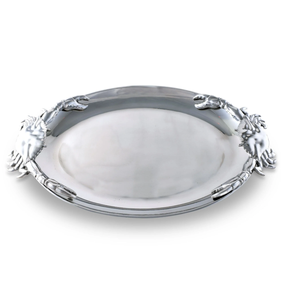 Guard your go-to dish with the help of this Crab Oval Platter from Arthur Court. Exquisite crustaceans rest on either side of this lustrous piece as they wait for an unsuspecting finger. The handmade, aluminum platter glistens on its own, but is the perfect accent to any colorful meal.