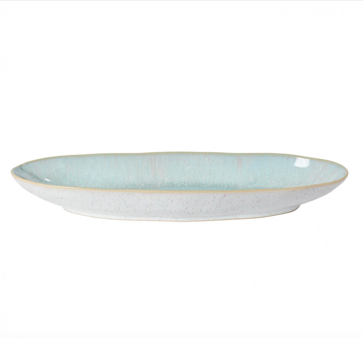 Discover Casafina's organic Eivissa collection. The natural curves are enhanced by reactive glazes creating perfectly imperfect patterns of beige sand and sea blue on the interior.