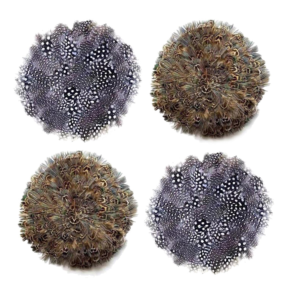 Set of 4 Feather Coasters including 2 Pheasant & 2 Guinea