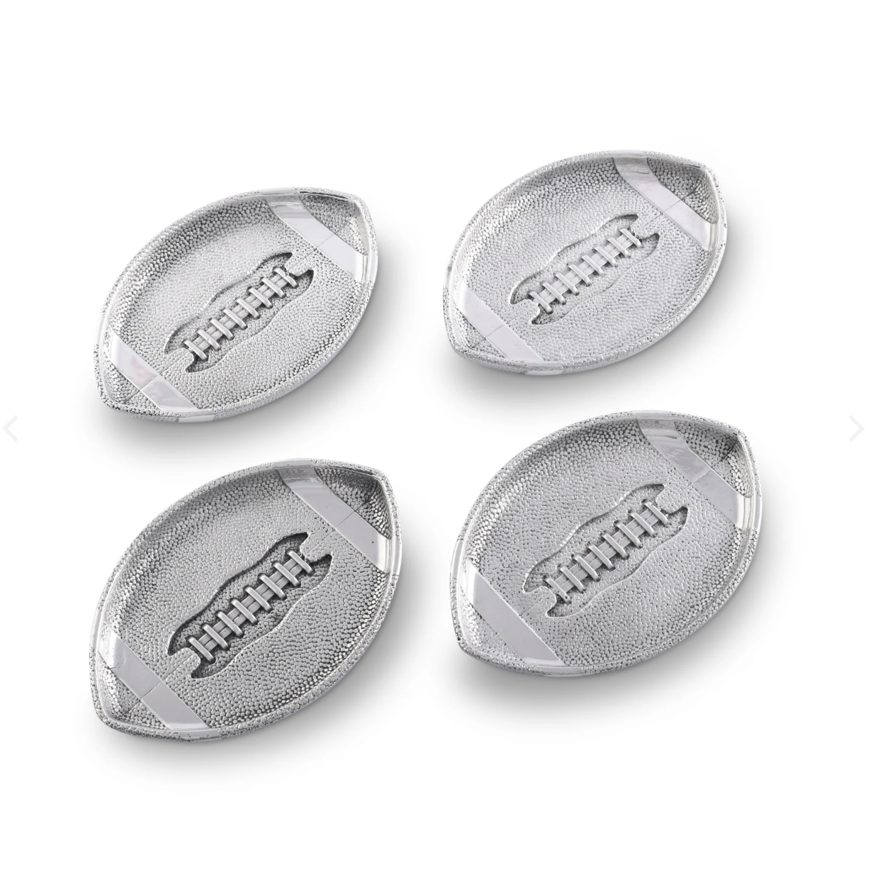 Celebrate your love for football with this set of 4 stackable Football Coasters, perfect for any sports enthusiast's home. These coasters, designed to resemble footballs, add a fun and thematic touch to your table setting. Crafted with a cork bottom, they provide excellent grip and protect your surfaces from stains and spills. The stackable design makes these coasters convenient to store, ensuring they take up minimal space when not in use. Ideal for game day gatherings, sports-themed parties, or everyday use, these football coasters are both practical and decorative, making them a great addition to any football fan's collection.