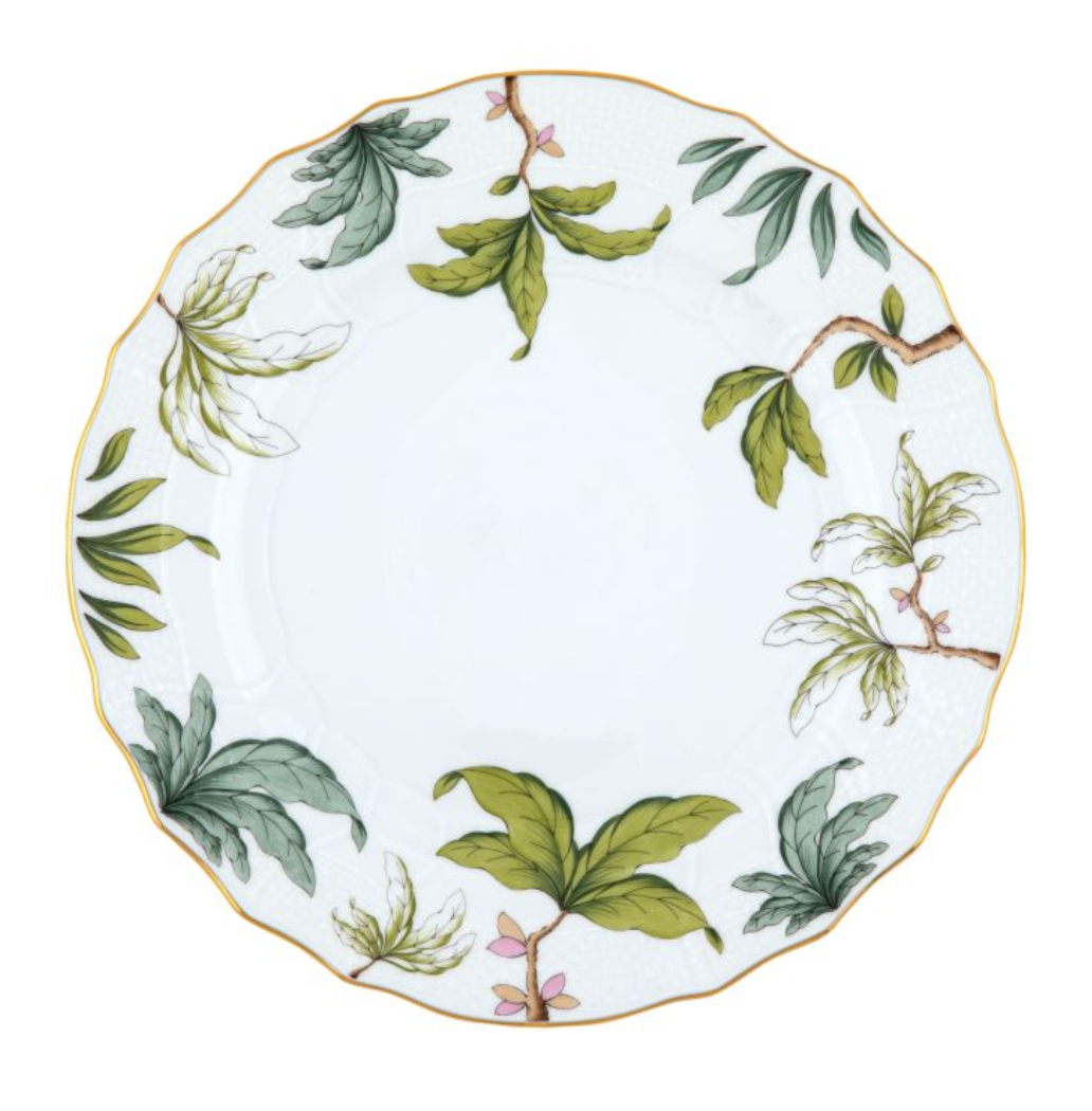 The Rothschild Birds may receive all the attention but the supporting cast of flowering trees with subtle pink flowers and stylized greenery are equally important to the story. With Foret Garland, they finally receive their turn in the spotlight as a beautiful laurel of flora growing along the rim of the porcelain canvas. The resulting composition takes on a very modern sensibility when featured on its own. Foret Garland fine porcelain china by Herend.