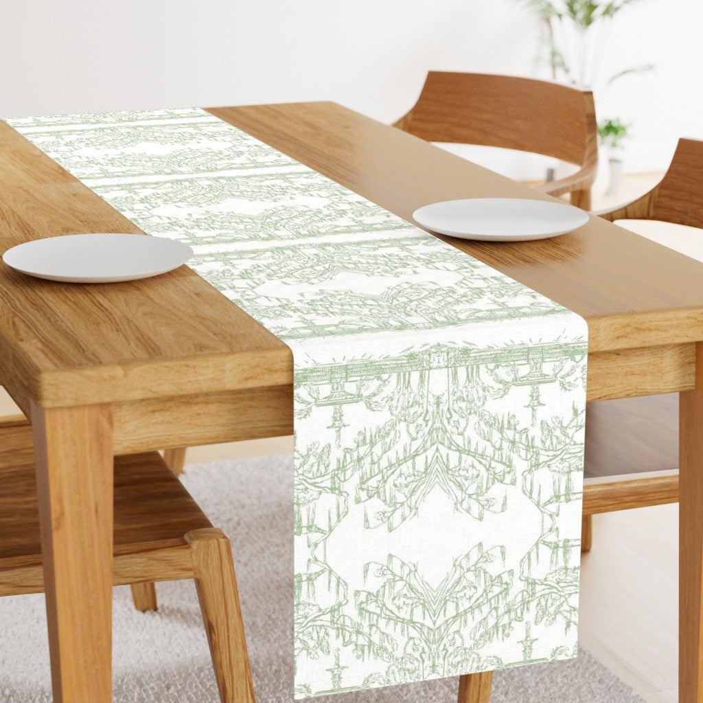 Celebrate Savannah’s beloved lady of Forsyth Park with this charming toile table runner, exclusively at the Cottage Shop. Designed by Hayley Lane Suthers, who fondly remembers the fountain from her wedding photos, the Forsyth Fountain Table Runner is now available for pre-order. Showcasing a hand-painted scene of the park’s centerpiece across a 16-inch wide fabric, it brings a delightful and elegant flair to your dining table.