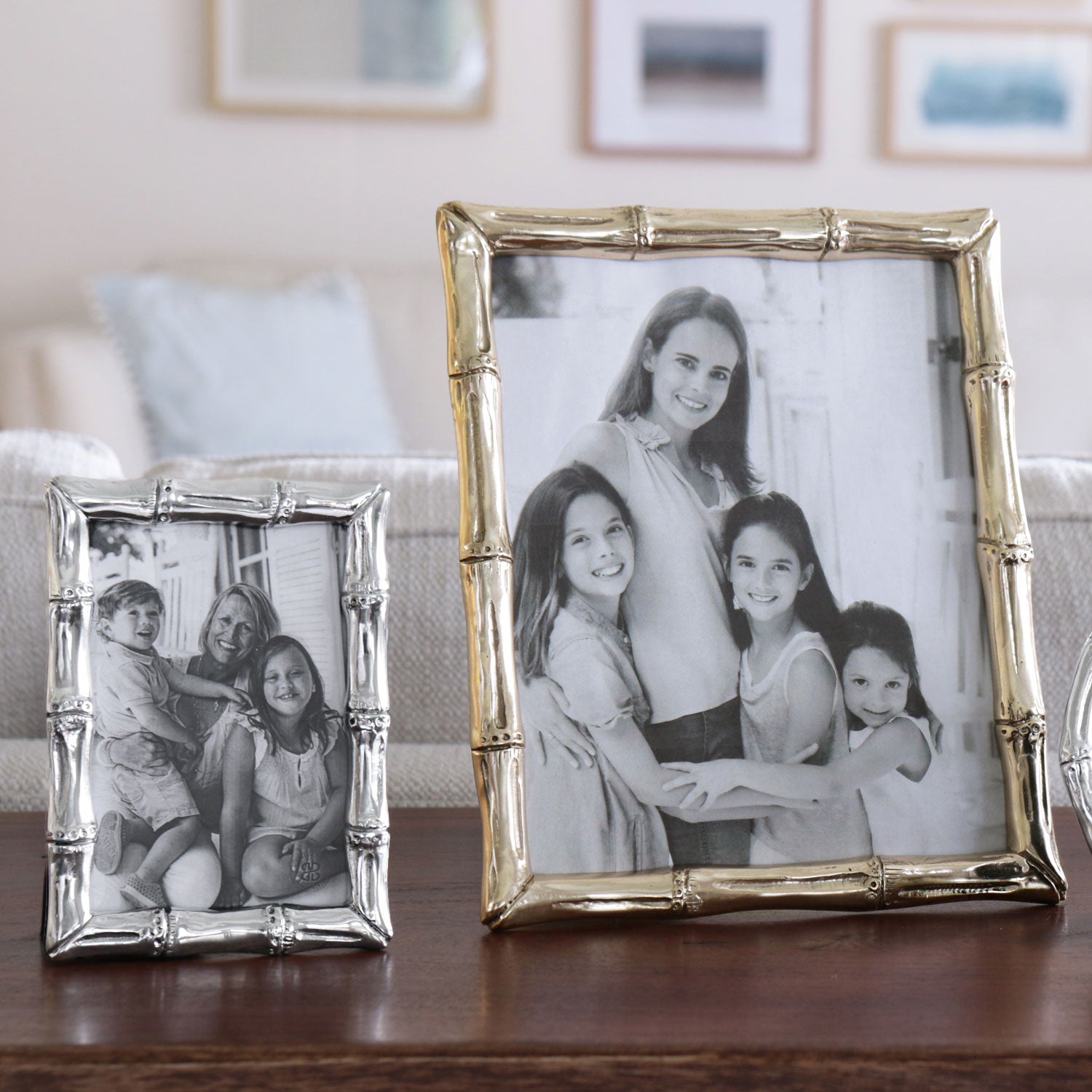 Bamboo chic! Bamboo is back and is a hallmark of the Grandmillinnial design trend. The gleaming bamboo-inspired GIFTABLES Garden Bamboo 4 x 6 Frame featuring a silvery hand-polished finish, is a design classic. Crafted to display an 4x6 photo (vertically or horizontally), the naturalistically detailed frame looks awesome on a desk, mantle, or table. The sophisticated decorative piece adds a modern new edge to Beatriz BallÂ's award-winning designs. Mix and match with other Beatriz Ball frames. A great gift idea! From our Giftables Collection; handmade and artfully designed Beatriz Ball items at irresistible prices. Each packaged in a lovely gift box. Beatriz BallÂ's intensely handmade products use eco-friendly and sustainable materials and are crafted by artisans who trace a heritage of metalworking for generations. Made of a top quality, easy-care, aluminum alloy. Tarnish free!