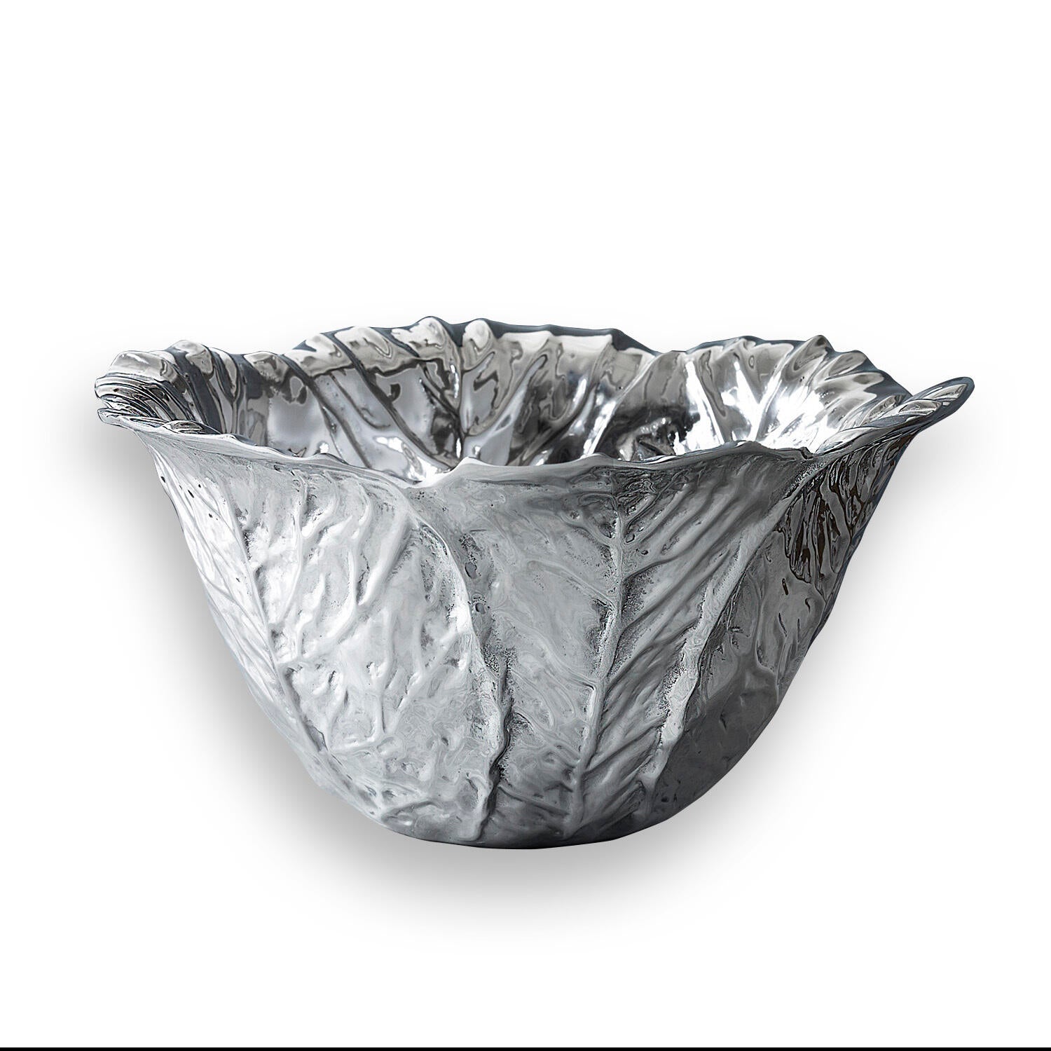 The Beatriz Ball GARDEN Cabbage large decorative silver bowl has deeply veined overlapping leaves, and is the perfect size for entertaining.