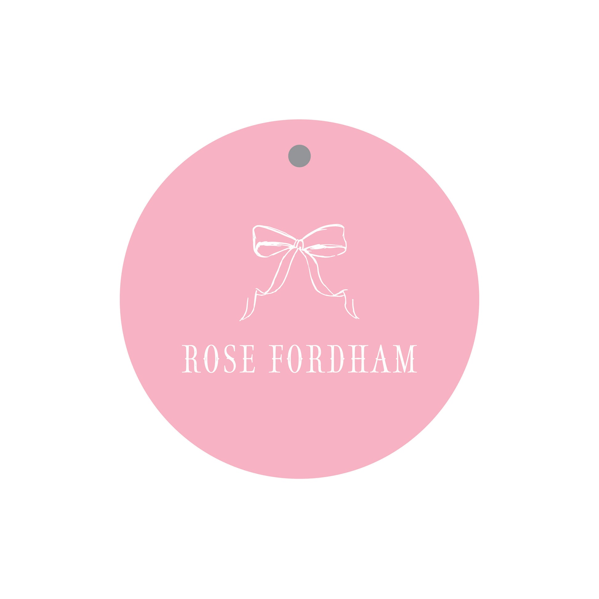 Select your ink color for the background. Bow and personalization will be in white. Back of tag will be white to allow for easy notewriting!