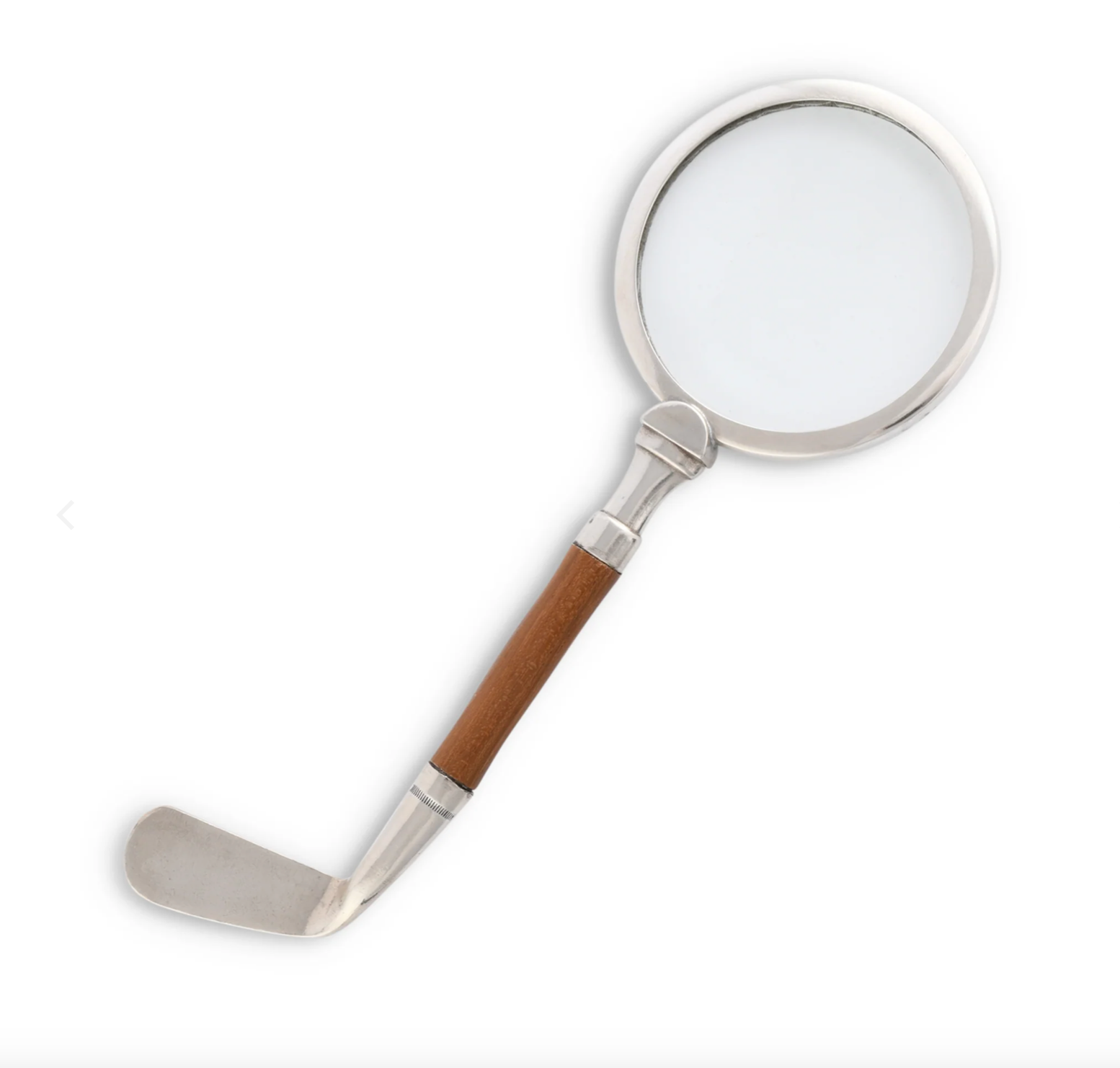 Introducing the Golf Club Magnifier - a stylish and functional desk accessory that is perfect for any golf enthusiast. This magnifier features a classic putter design, complete with a teak shaft and metal head, adding a unique touch of sophistication to your home or office decor. The magnifying glass is perfect for reading small print or examining details, while the golf club design adds a touch of personality to your workspace. Crafted from high-quality materials, the Golf Club Magnifier is both durable and functional. Its compact size makes it easy to fit on your desk or bookshelf, while its elegant design makes it a great conversation starter for any golf enthusiast. This magnifier is not only functional but also a beautiful decorative piece that complements any décor style, from classic to contemporary.