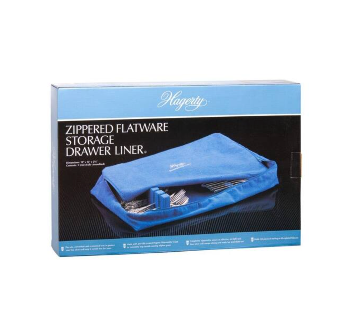 With Hagerty's Zippered Drawer Liner you can protect up to 120 pieces of your favorite silverware from sulfur-induced tarnish. Made from Hagerty's silversmith cloth you can rest easy with the knowledge that your silverware is preserved and ready for your next occasion.