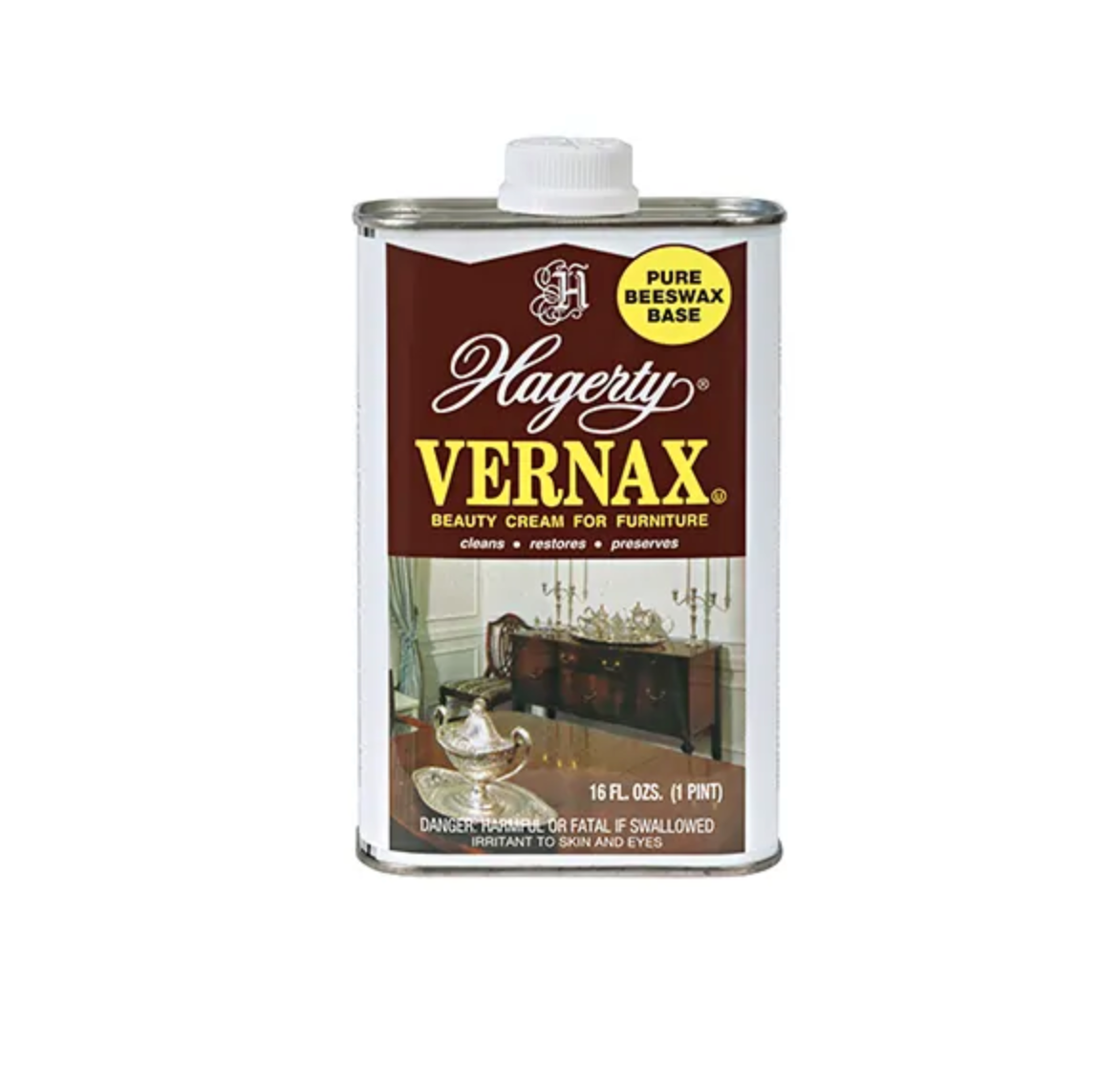 Hagerty Vernax Furniture Polish cleans, restores, and preserves wood and leather. Vegetable oil and beeswax preservatives restore the natural oils and moisture that are depleted out of wood furniture by heating and air conditioning. Used in museums, galleries, and antique stores. Keeps leathers clean and supple.