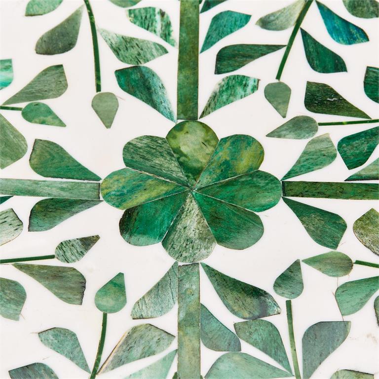 This tray is hand-crafted by skilled artisans who are expertly trained at laying detailed mosaics. The mosaic design goes all the way around the tray making it an absolute statement.