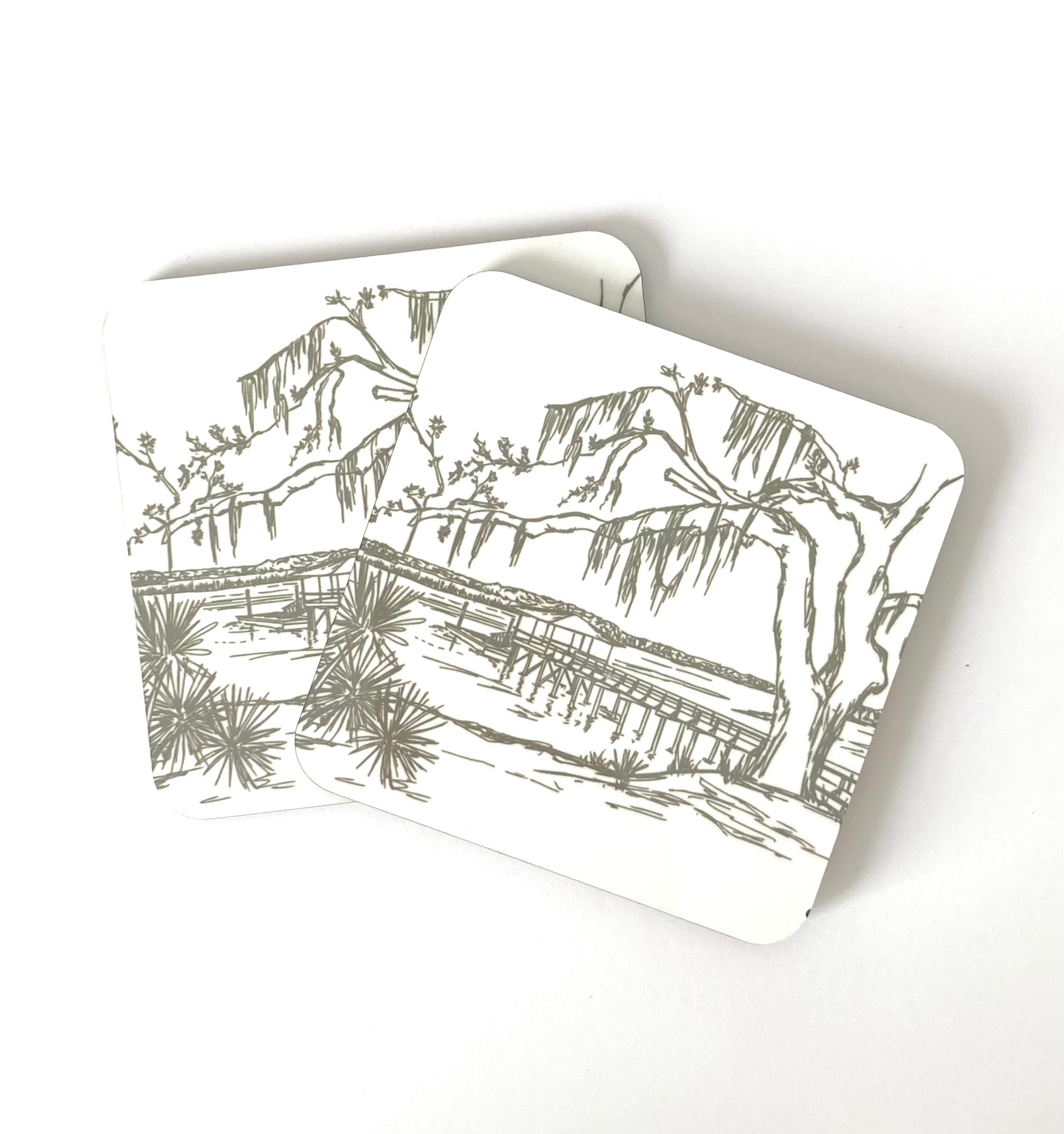 Exclusively at The Cottage Shop, our custom designed artwork brings to life scenes in beautiful Savannah. Coaster features Isle of Hope scene on hardboard drink coasters, art by Hayley Suthers. Hand washable, safe for kids!