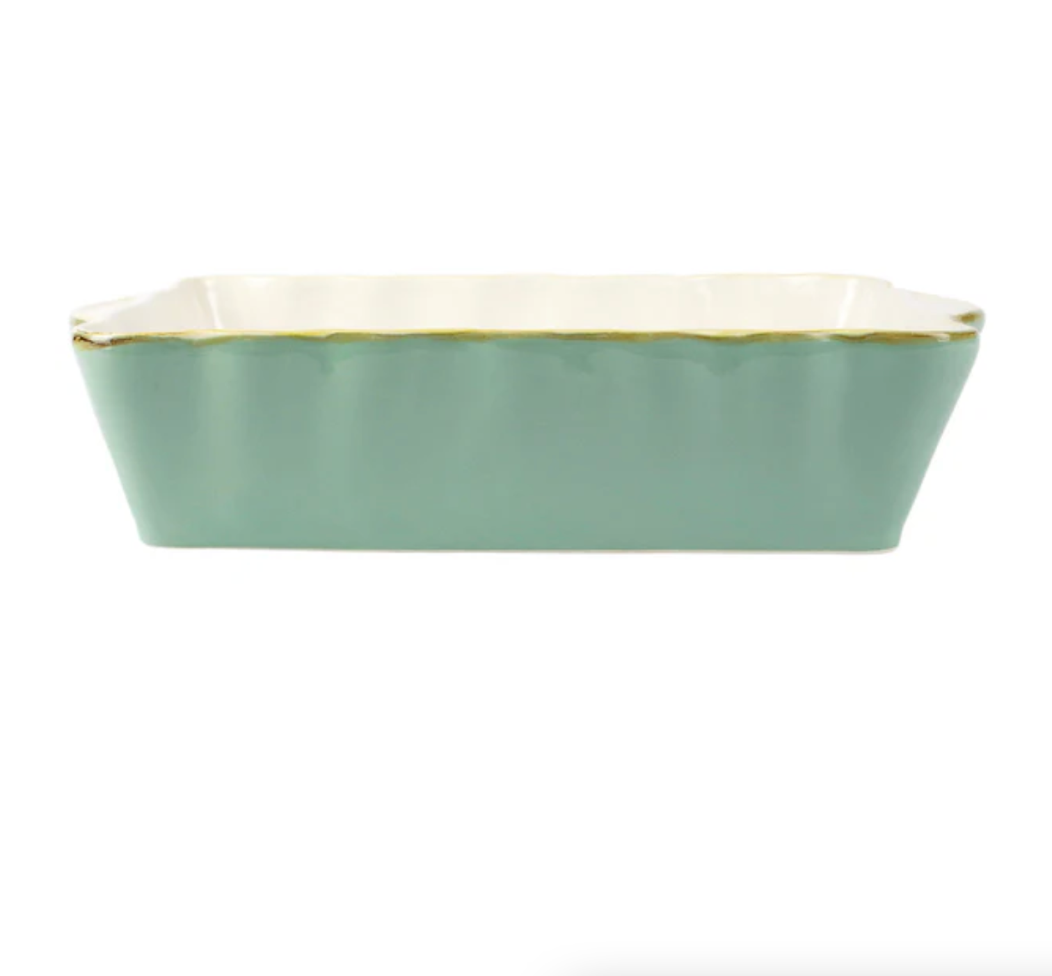 Featuring scalloped edges and a bright, beautiful hue, the Italian Bakers Large Rectangular Baker is part of VIETRI's newest line of bakeware. Handcrafted of Italian stoneware in Umbria, this generous size and fun shape is perfect for all gatherings.