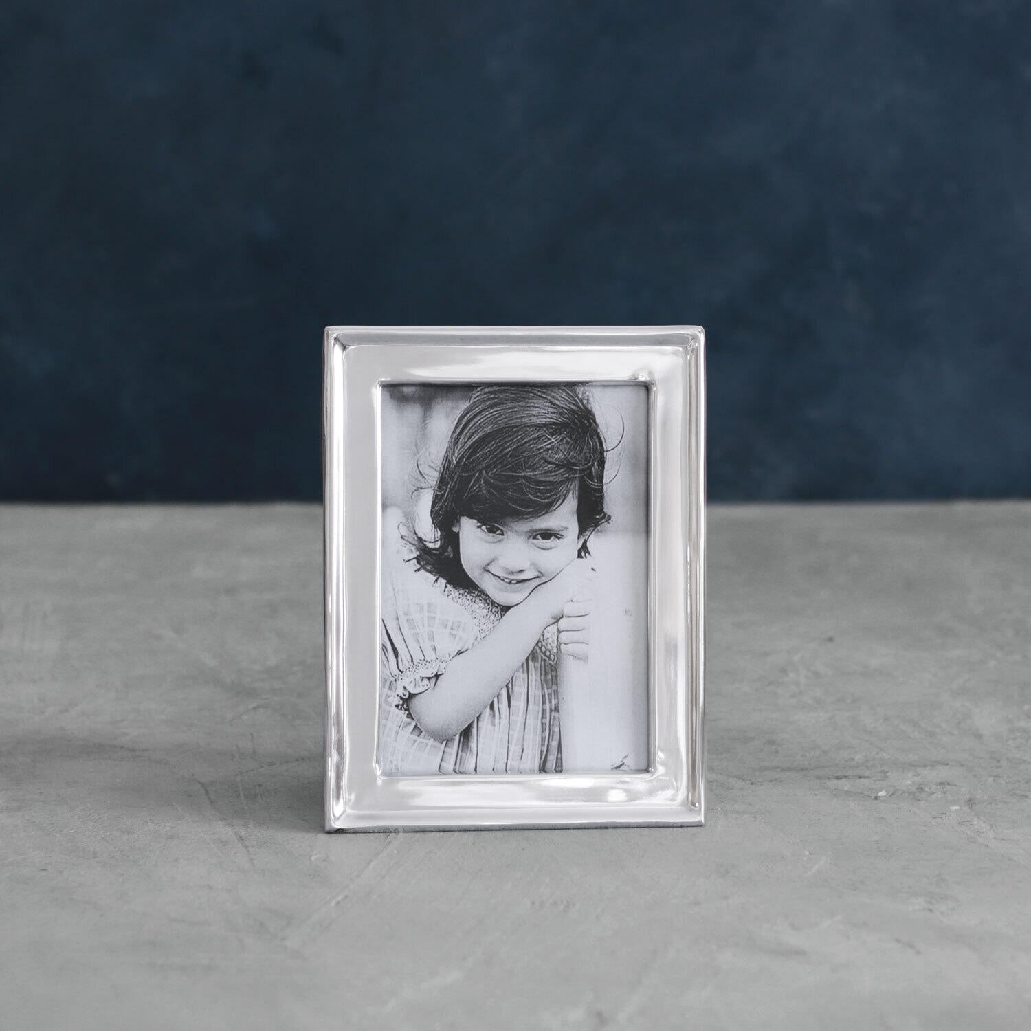 The handsome GIFTABLES Jason frame of hand-polished metal enhances your favorite 5x7 photo, and makes a brilliant statement when displayed on the mantle, desk, or shelf. From our GIFTABLES Collection featuring handmade and artfully designed Beatriz Ball items at irresistible prices. Packaged in a lovely gift box, you'll love this handsome frame in one of our bestselling styles. Makes a luxurious gift for any occasion. The footed, self-standing frame makes a fine wedding gift, or for any special occasion, and is an elegant solution whenever a frame is called for. Sandcast and hand-finished, the frame is made of an easy-care aluminum alloy that never needs polishing. Tarnish free.
