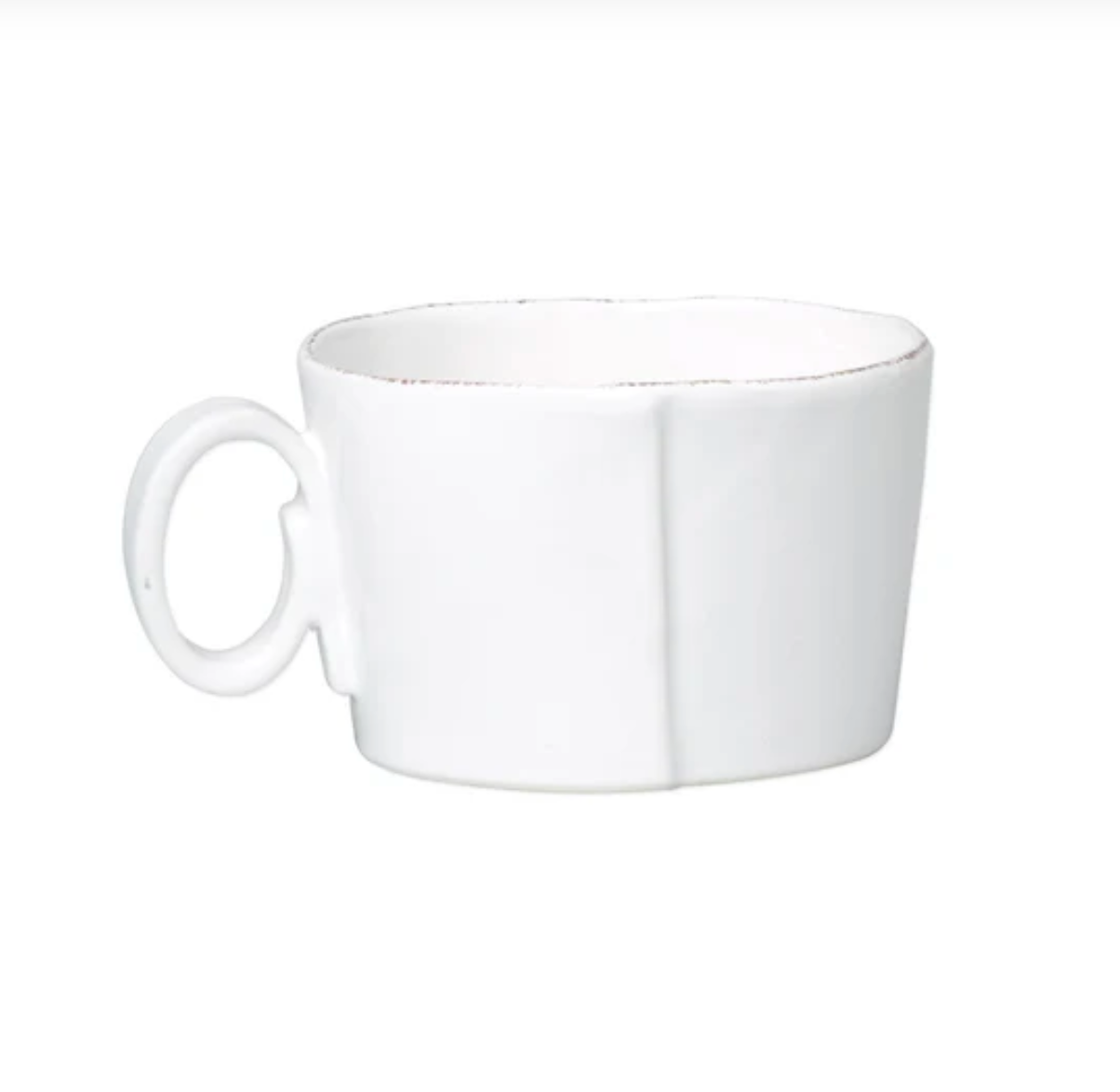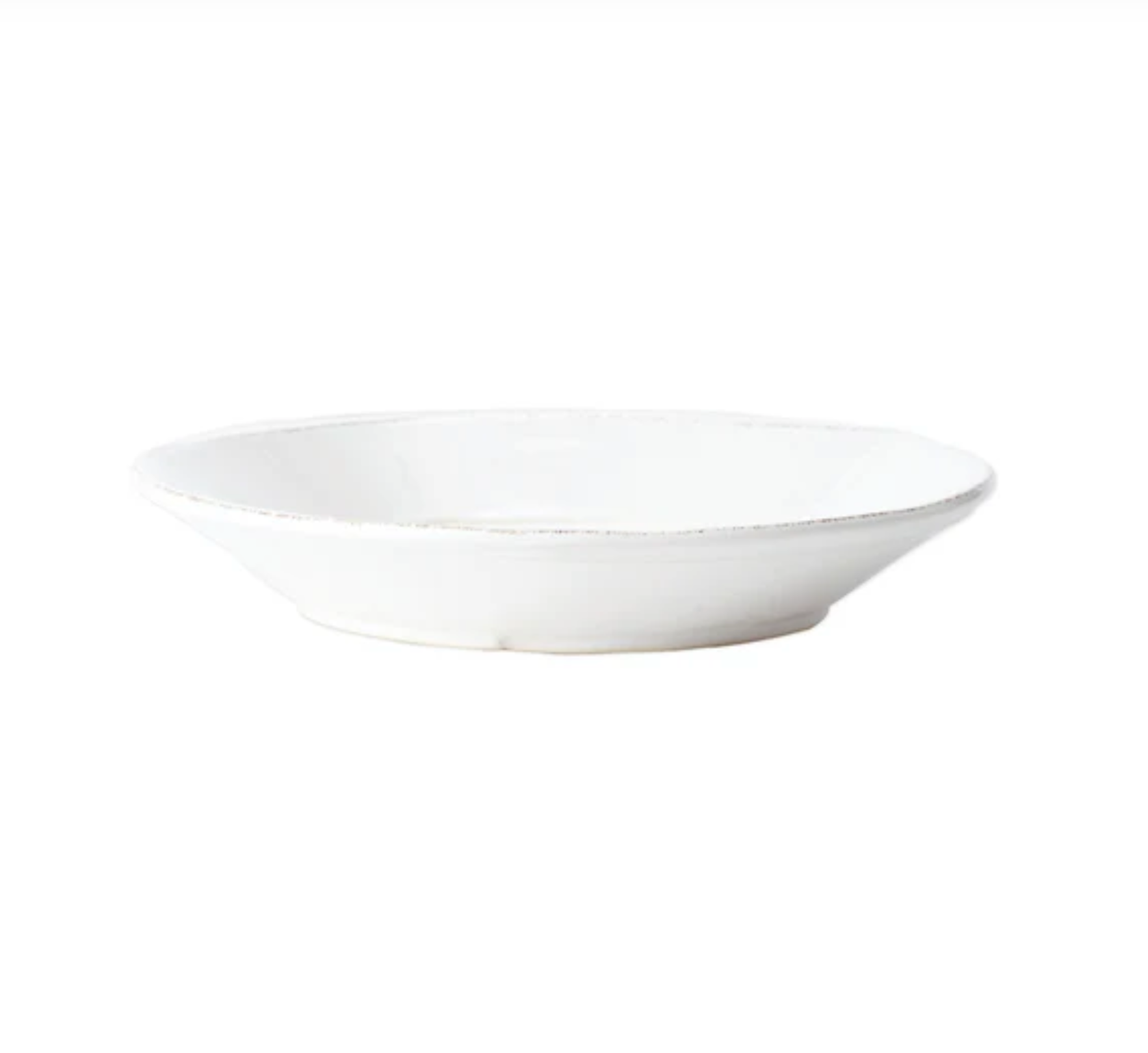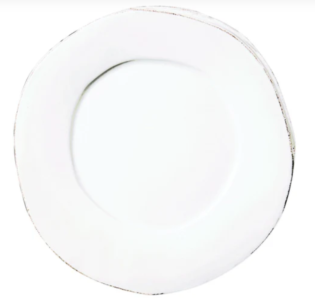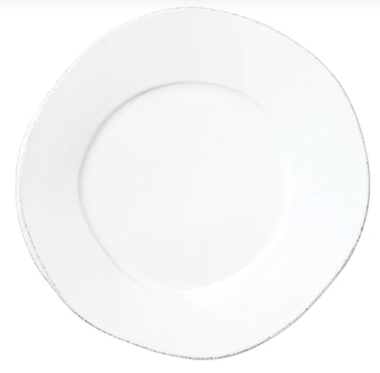 The clean and simple lines of Lastra were inspired by the circular wooden slab used for centuries to create the outer mold in cheesemaking throughout Italy. When fashioned together with twine, the hoop was left with a slight overlap to help maintain the shape of the cheese mold. Maestro molder Stefano Roselli incorporates the overlapping detail into the entire design, from its foot to its rim. A dark dusting on the edges of each piece suggests the ash that was used to preserve these cheeses and highlights each unique silhouette.