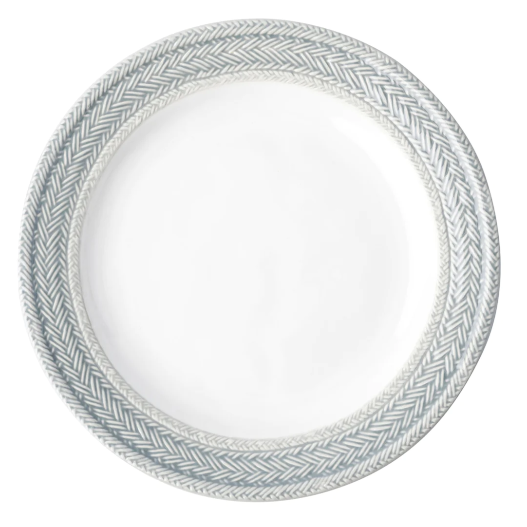 From our Le Panier Collection- Inspired by the French basket weave often found in equestrian and nautical traditions, the border is beautifully hand-painted in a windswept Delft Blue.