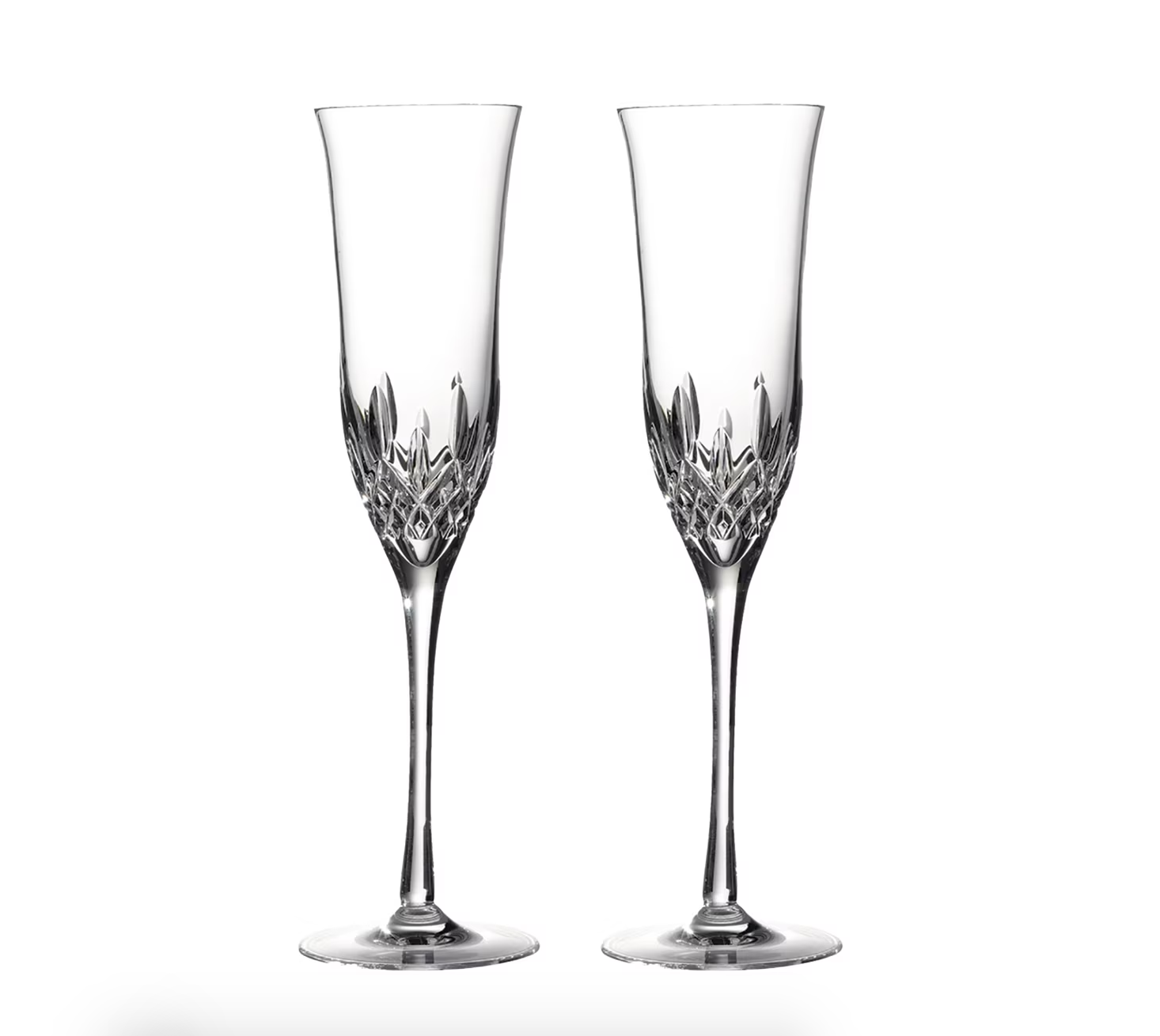 Bring sheer excellence to your celebrations with our pair of Lismore Essence Champagne Flutes: an elegant, contemporary statements that provides the perfect serve for sparkling wine, mimosas, spumante or champagne cocktails. Expertly shaped to elevate your champagne experience, these flutes exude excellent form and function. The light wall and gentle stem combine to enhance the effervescence of your favorite sparkling wine, whilst the flared rim evokes a trumpet bell: a symbol of celebration and exaltation. Beautifully embellished with our signature Lismore pattern around the narrow bowl, these flutes are the pinnacle of a luxury champagne experience.