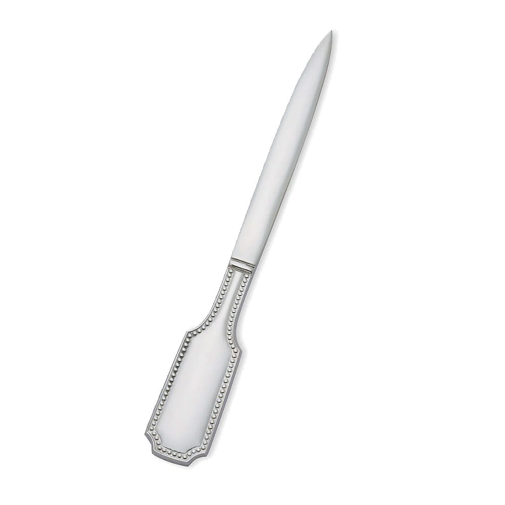Gentle beads line the handle of this silverplate letter opener, giving the piece a subtle texture and grip. Use to open mail or other important documents.