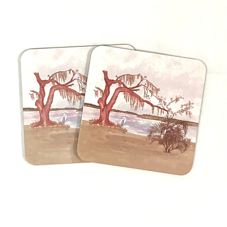 Exclusively at The Cottage Shop, our custom designed artwork brings to life scenes in beautiful Savannah. Coaster features full color Isle of Hope marshscape with a blue heron on hardboard drink coasters, art by Hayley Suthers. Hand washable, safe for kids!