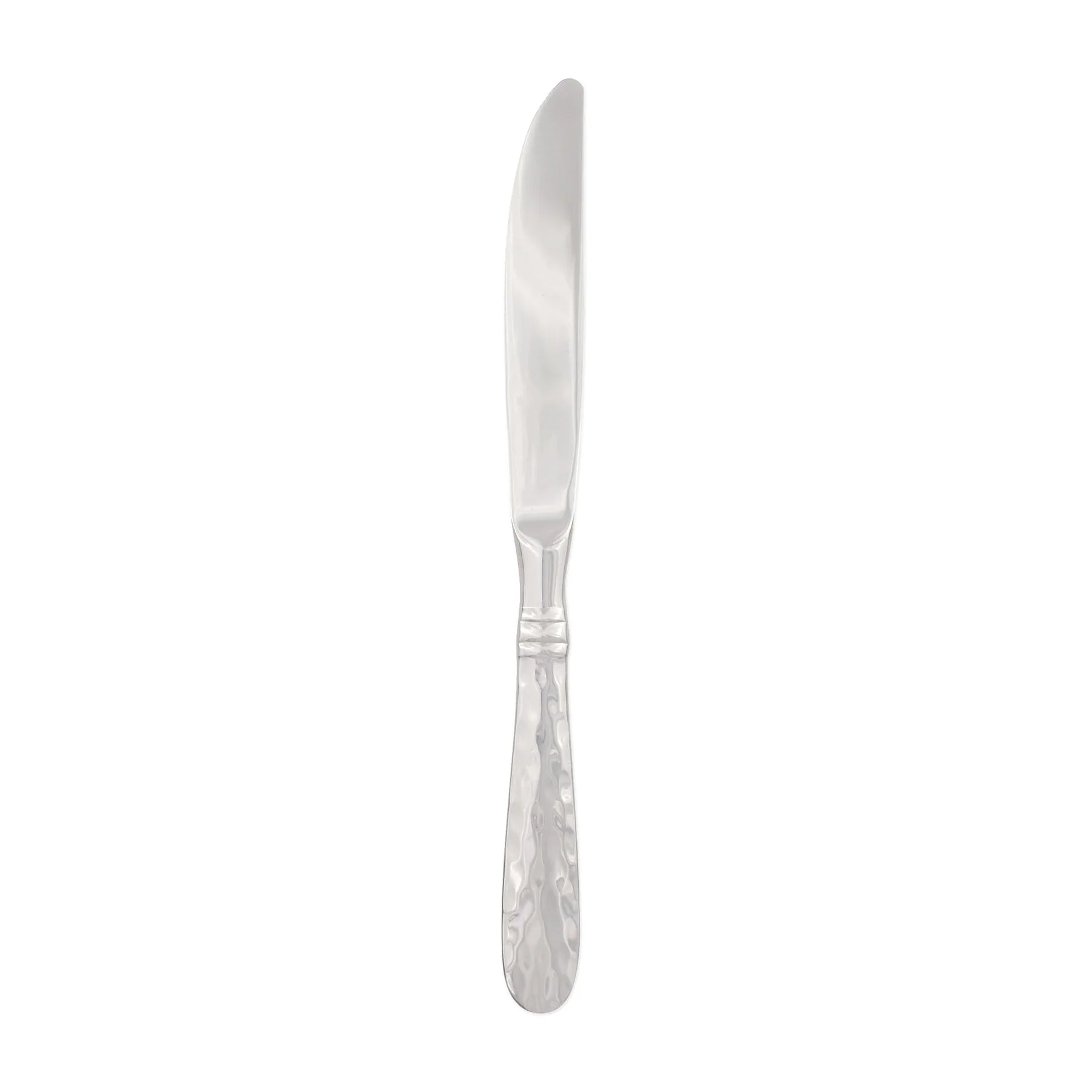 Italian artisans forge the Martellato Place Knife thus adding hammered detail. The 18/10 stainless steel combined with years of craftsmanship result in a well-balanced, weighty flatware. This hammered flatware set is made in Lumezzane, Italy, by the Bugatti family.