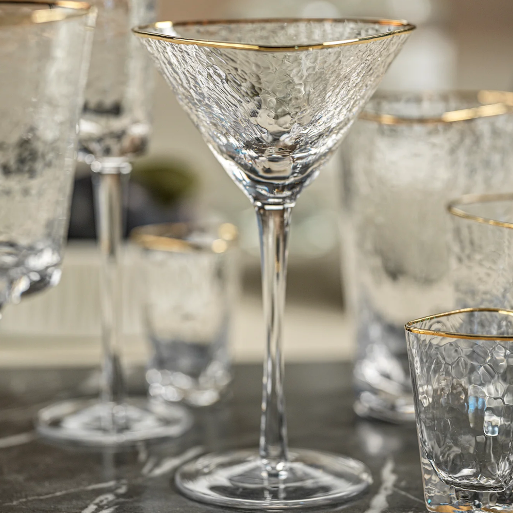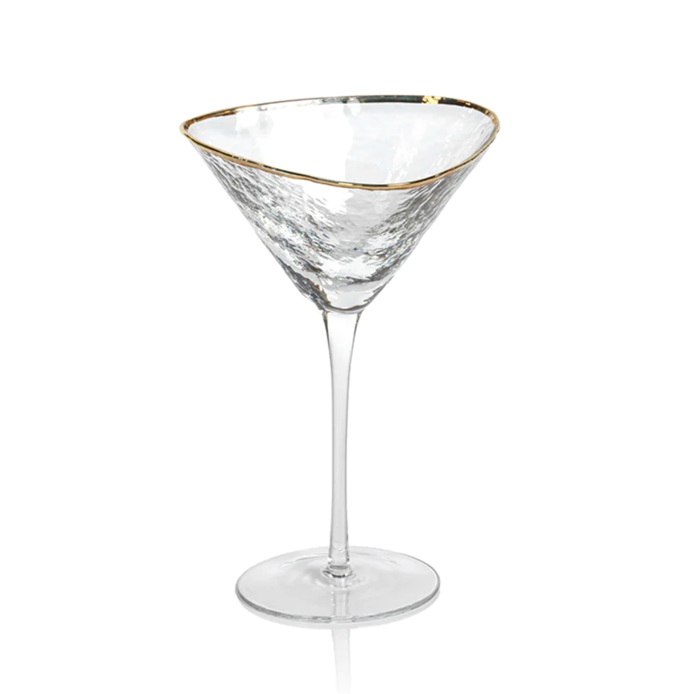 Shake up your barware with these gold-rimmed triangular martini glasses.