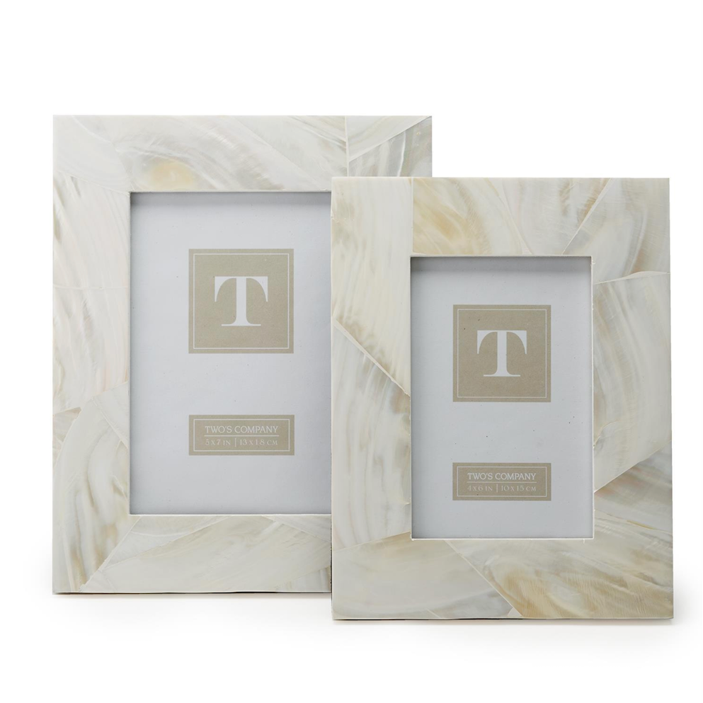 Mother of Pearl frame, made from natural material. The sheen and luxuriousness of them make for a great gift.