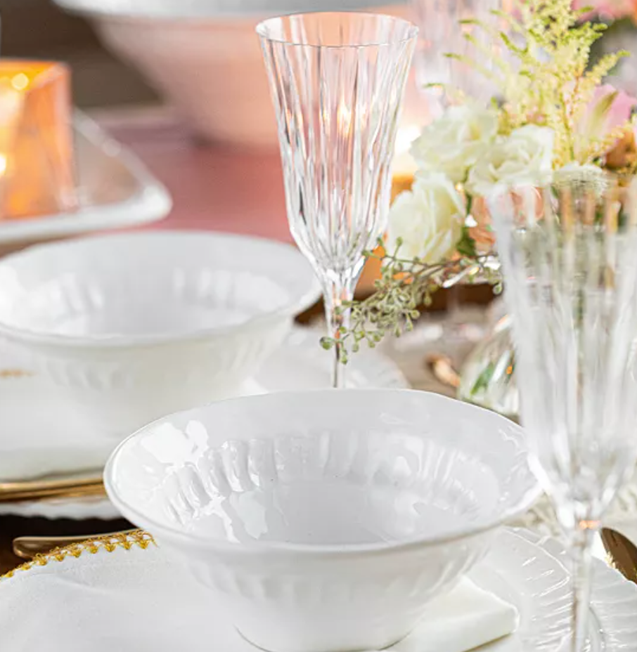 Etched Italian glass and a tulip shape make the Natalia Water Glass an elegant choice for your next soirée.